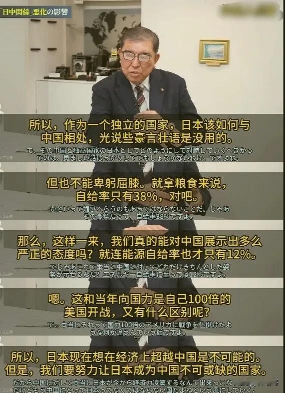 石破茂卸任日本首相以后,说了他在任时期不能也不敢表达的事实,他认为现在日本挑衅中国的行为跟二战时期挑衅美国一样愚蠢,应该从实力出发看待中国崛起,日本可以有一定自主性,但应当避免成为大国地缘角力的牺牲品。日本离美国很远,离中国却很近。为什么不能学习中国唐代时期的遣唐使一样,成为中华文化圈中不可替代的一部分,会不会比成为美国盟友更靠谱一些呢。 这不是说石破茂是日本鸽派,他只是个务实的右翼罢了。起码他懂挑衅大国就是自杀一样。