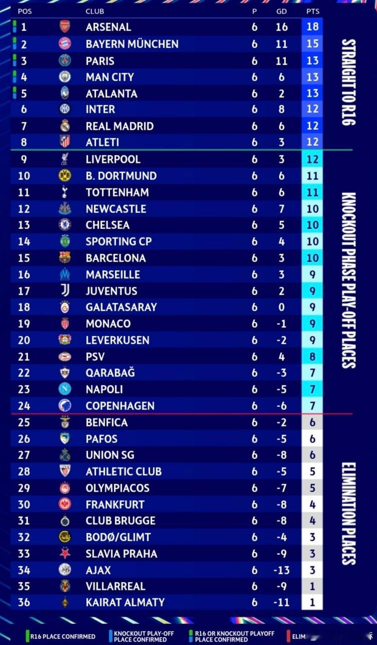 [欧冠第六轮排行]拜仁稳居第二,直八基本确定!拜仁