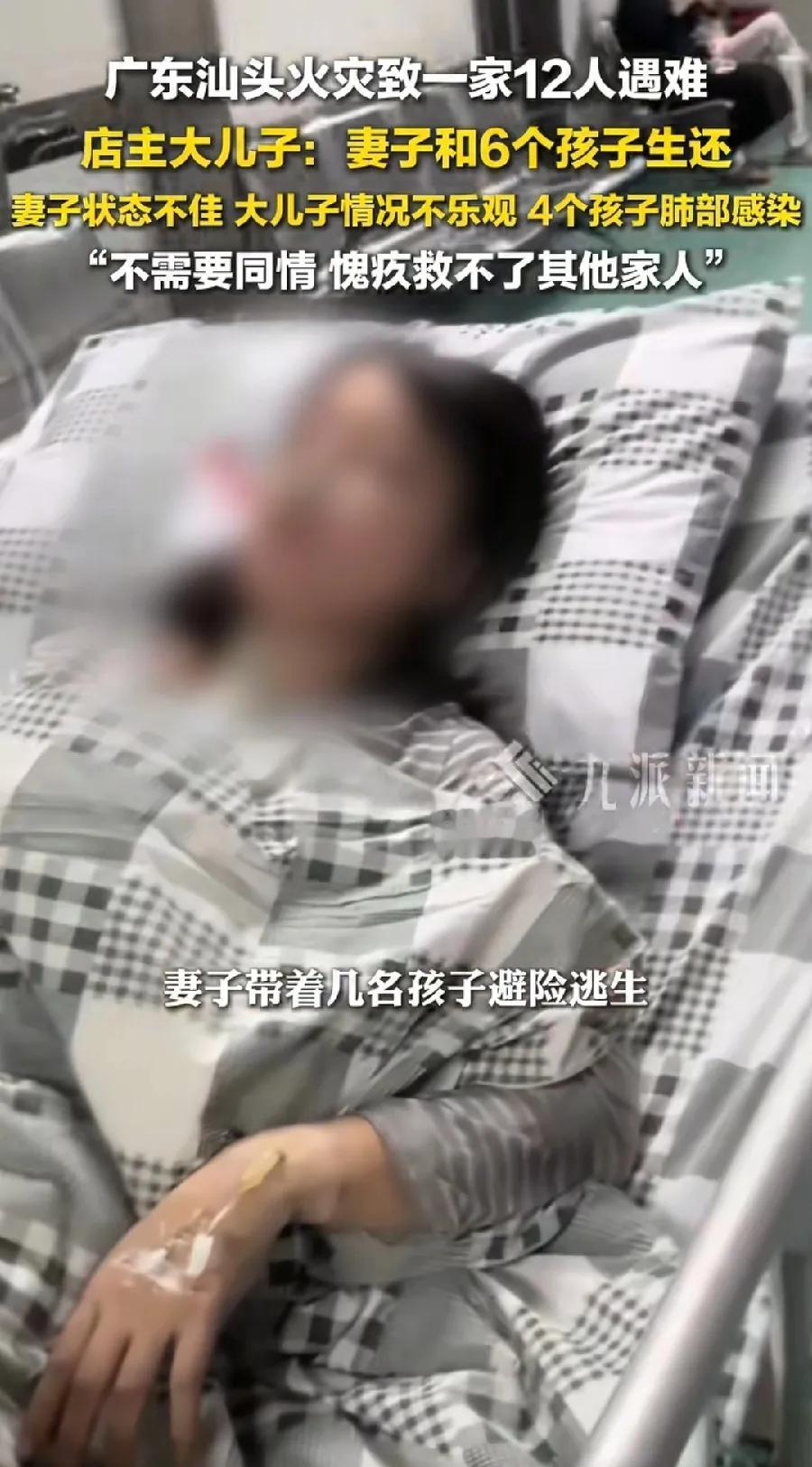 汕头自建房大火, 那12人没有跑出来的原因终于找到了! 据幸存的大儿子透露:当时他爸妈和另外两个弟弟一家,都被困在四楼。 期间他们试图通过去楼顶的阳台躲避,但是没有成功,因为到天台的小门被锁住了。 这时候一楼的火已经很大了,再往下跑已经不现实了,光是烟雾就呛的人受不了。 所以他们只能被困在四楼的窗户边等待救援。期间他们不停的呼救,路边的邻居也教他们打湿毛巾捂住嘴巴和鼻子,但还是无济于事。 如果不是天台的小门被锁,或许这一家都能逃生,好可惜啊[祈祷][祈祷]