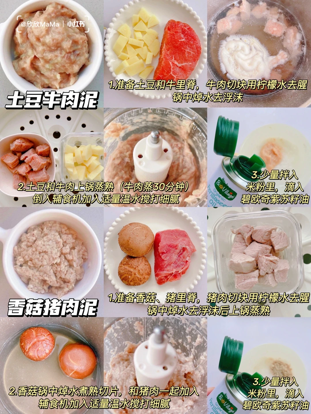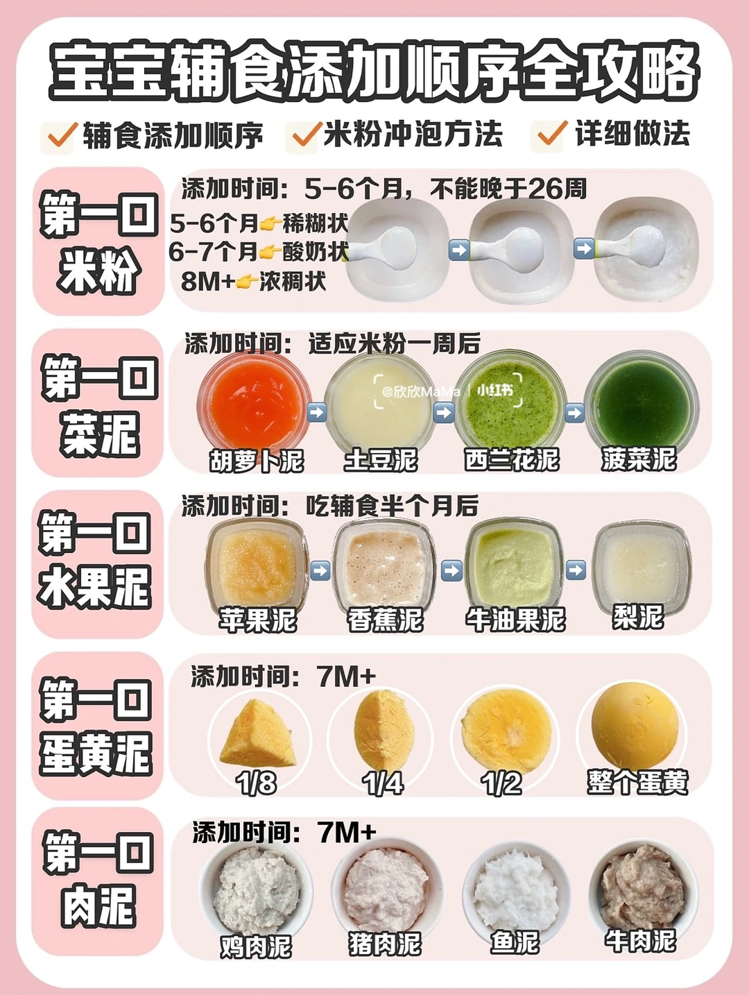 🔺同时我还分享了“辅食泥添加顺序”、“第一口米粉如何添加”、“宝宝辅食油如何添加”及肉泥的储存和解冻方法!新手爸妈赶紧收藏起来啦!!
