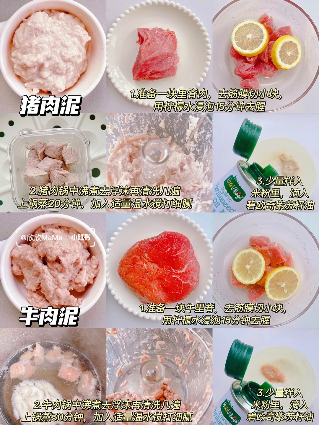 ⚠️宝宝第一口肉泥建议先吃白肉再吃红肉,依次顺序鸡肉泥👉猪肉泥👉鱼泥等