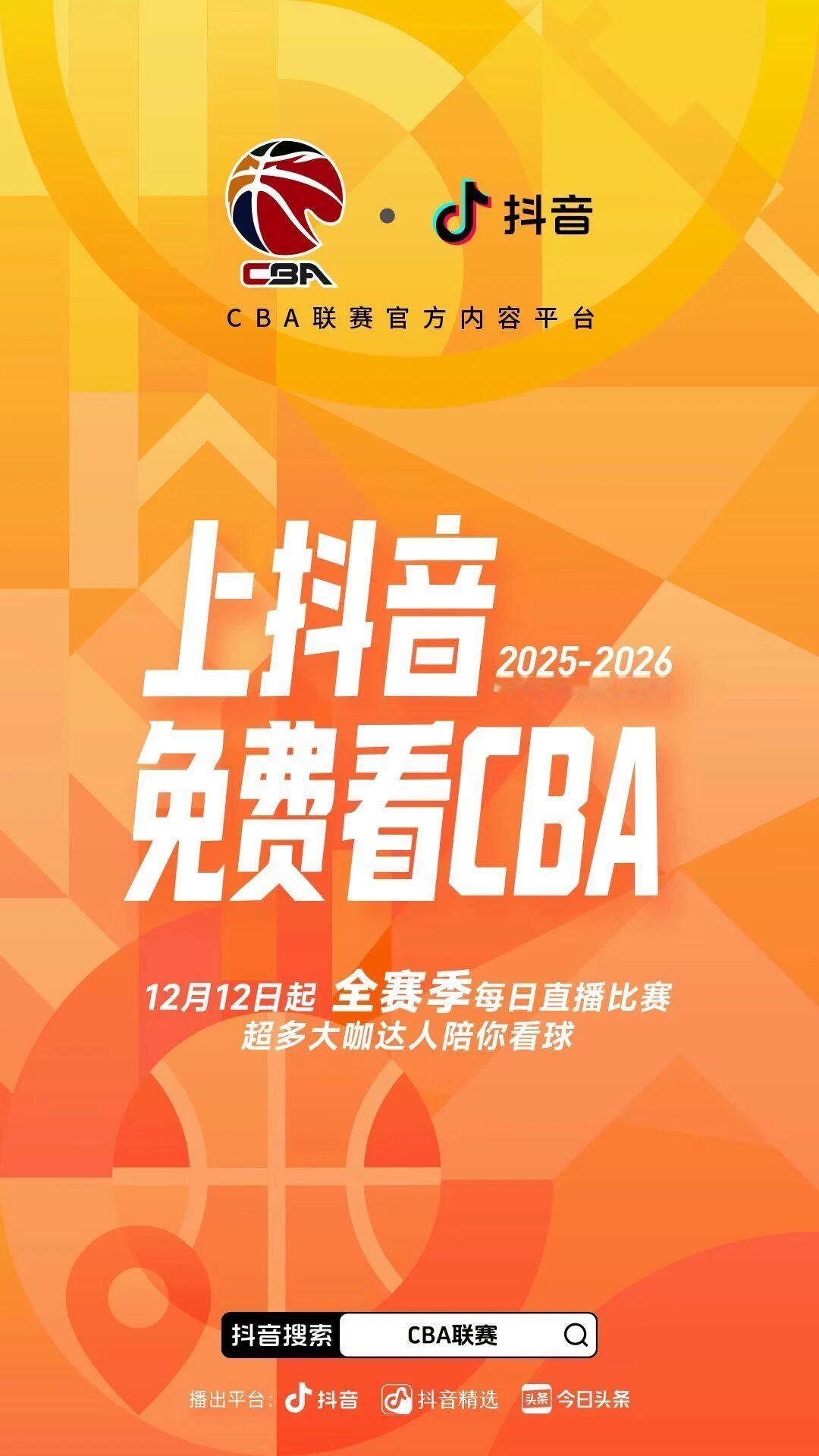 官宣:CBA公司与抖音集团达成合作,抖音正式成为CBA联赛官方内容平台。欢迎抖音加入CBA大家庭!自12月12日CBA揭幕战起,抖音、抖音精选、今日头条等抖音集团相关平台将在每个比赛日免费直播精选比赛场次。 广大球迷朋友们还可以通过CCTV5、CCTV5+、央视体育APP、央视频APP以及北京广播电视台、广东广播电视台、吉林广播电视台、江苏广播电视台、辽宁广播电视台、青岛广播电视台、山东广播电视台、山西广播电视台、天津广播电视台、新疆广播电视台、浙江广播电视台(以拼音字母排序)等地方电视台观看CBA比赛。