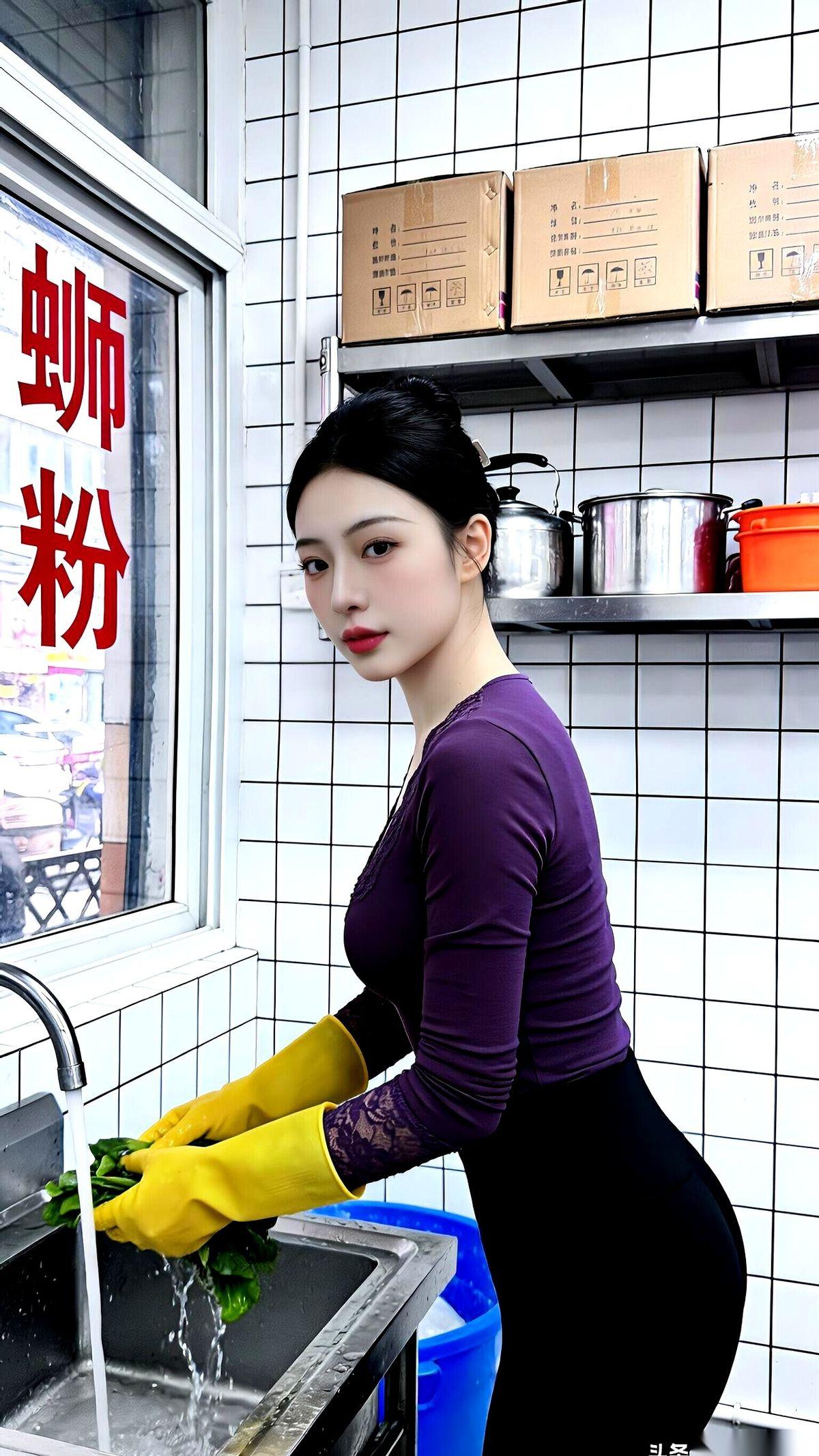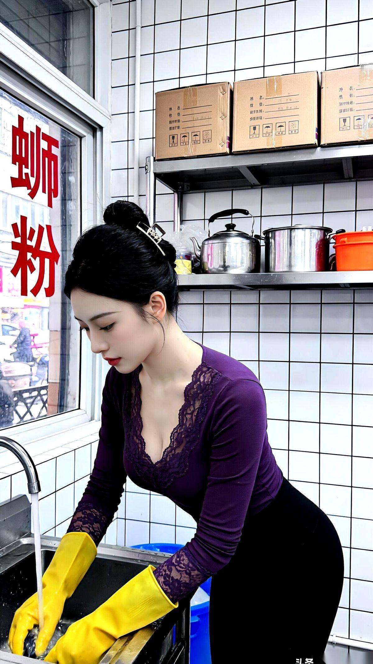 别看窗户上贴着“螺蛳粉”仨字儿,我跟你说,她自己,才是这家店真正的招牌。 活的。 就这张照片,一个紫色袖套,一副黄手套,埋着头在那儿哗哗地洗菜。你说这有啥好看的?可我就是挪不开眼。这股认真劲儿,现在太稀缺了。 十年了,据说。 每天就是锅碗瓢盆,汤底配料,迎来送往。 把一件顶没意思、顶枯燥的事,愣是干成了一门手艺,干成了一家店的口碑。 现在的人都太聪明了,总想着找风口,走捷径,一年换三个赛道。 谁还愿意下这种笨功夫? 把青春、把耐心,全都熬进一锅汤里。 所以啊,别跟我扯什么匠心、什么情怀,那些词都太虚了。 我就认一个理儿: 一个人,愿意用十年时间,认认真真给你做一碗粉。 这事儿本身,就比什么都香。