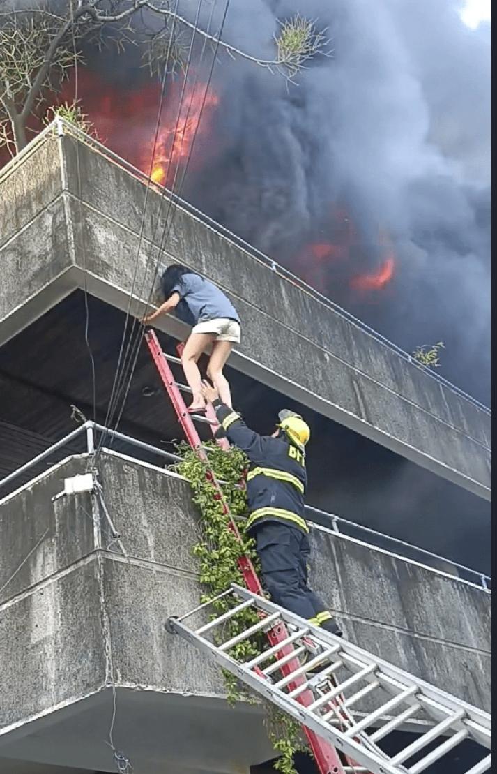 在火海死神面前,人能有多勇敢?近日,菲律宾中部宿雾都会区的曼达威市(Mandaue)发生一起惊险火灾逃生事件。一名女子被困起火大厦三楼,被烈火围困时,她未立刻逃生,而是先将两只爱犬从露台抛下,由下方等待的消防员和热心民众接住。随后,她爬下救生梯成功脱困。整个过程的影片在社交媒体上疯传,太感动了。