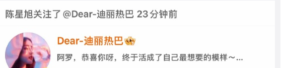 迪丽热巴陈星旭剧播完才互关剧里的故事落幕,剧外的互动才开始,这份不急于营业的真诚太戳人了。