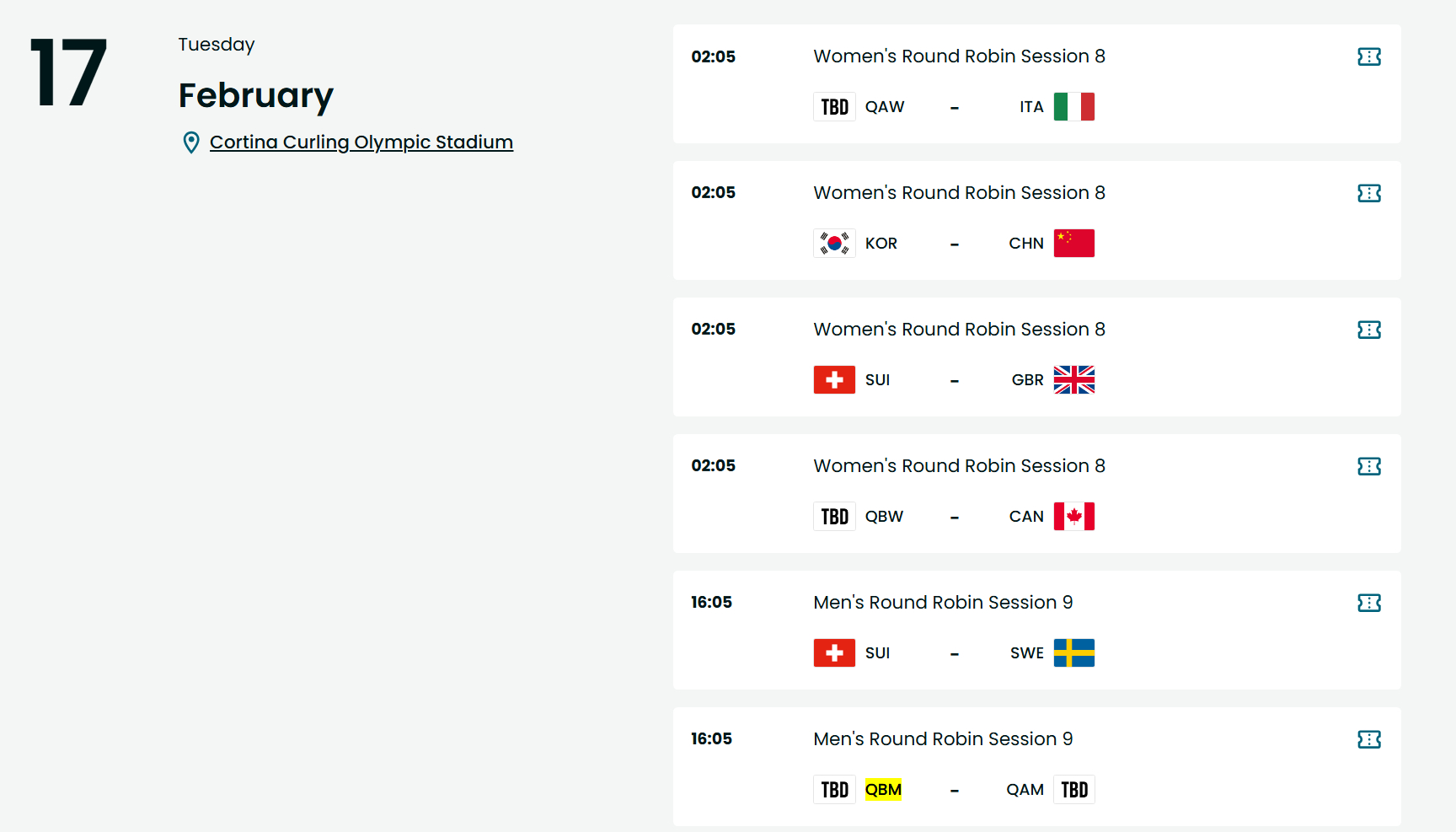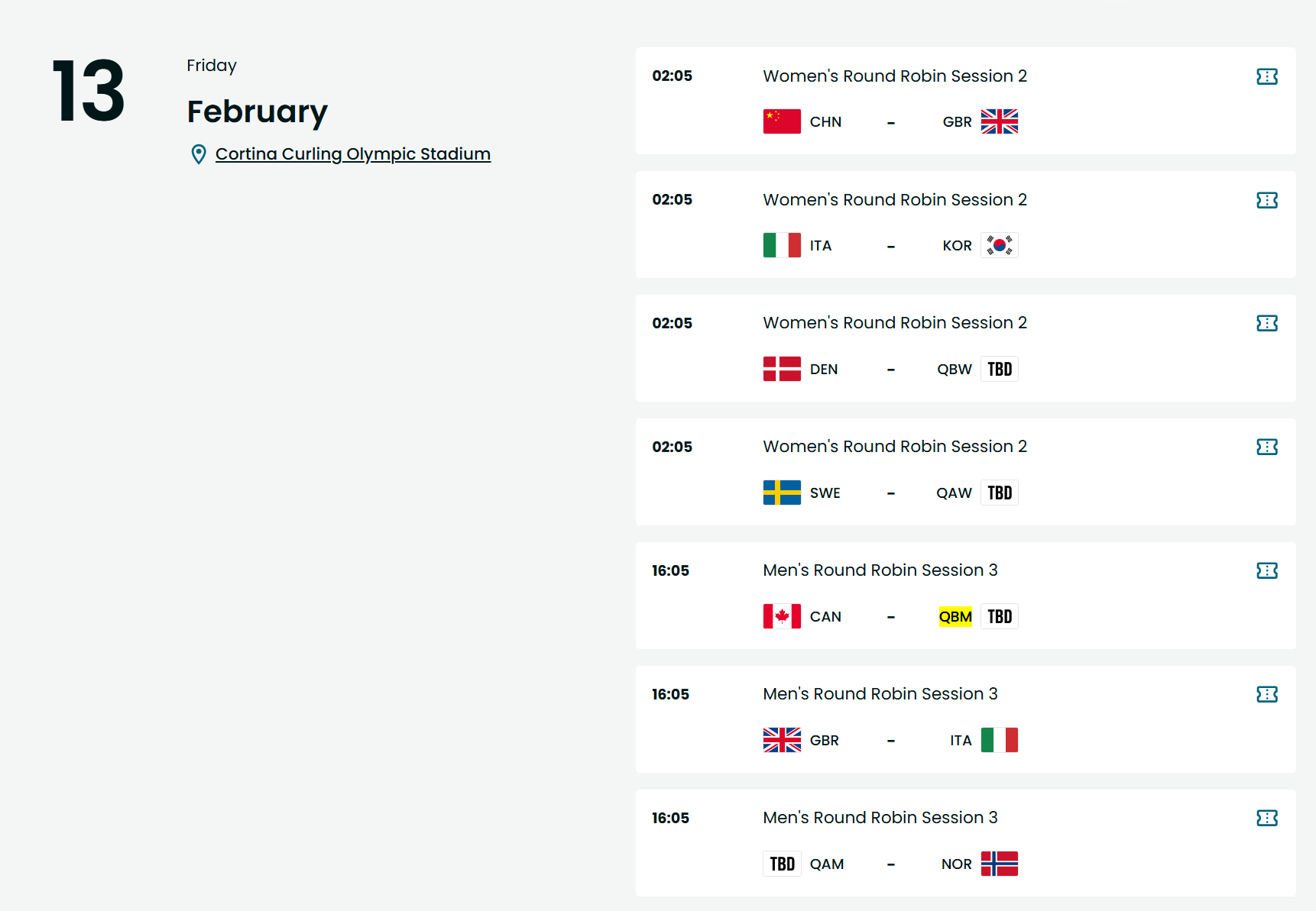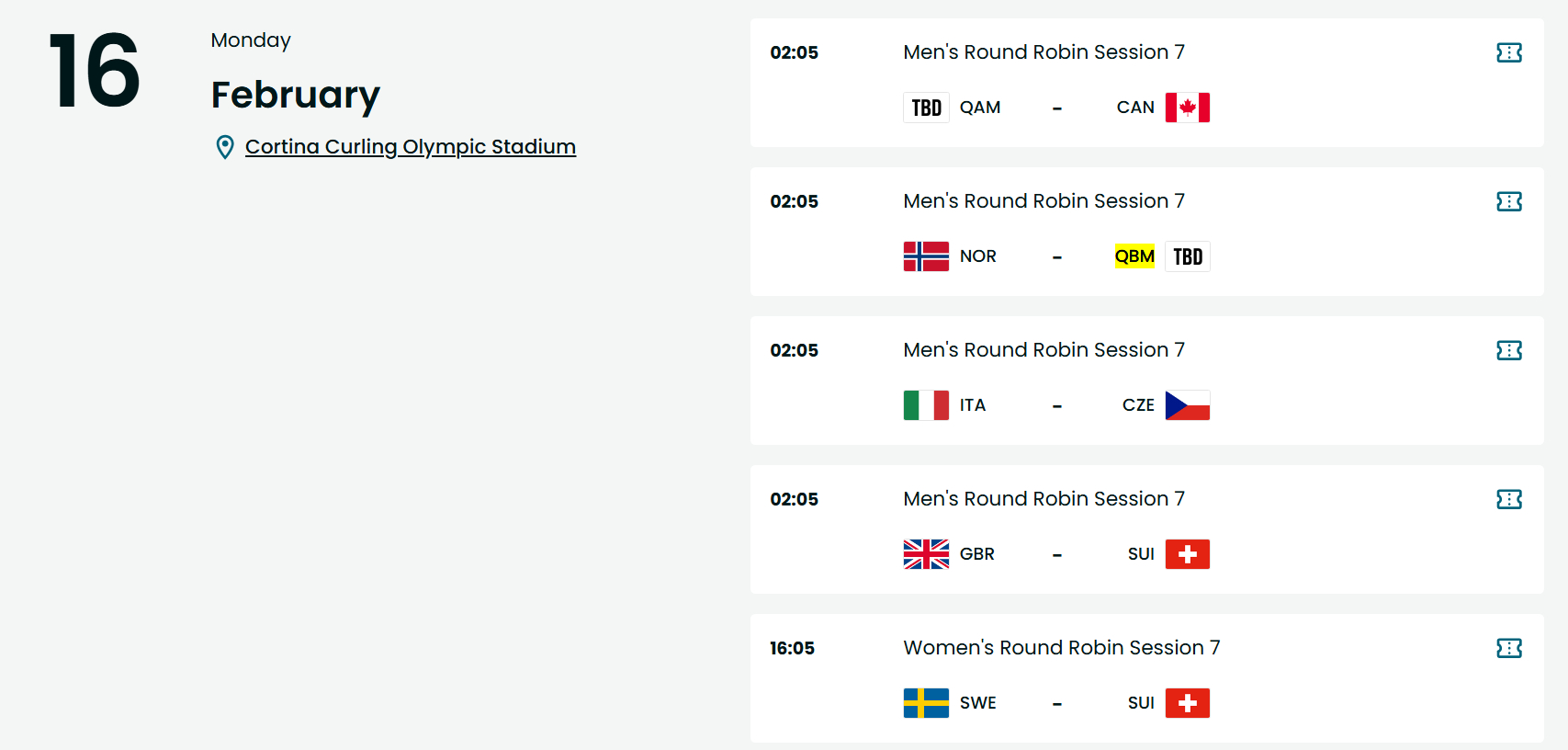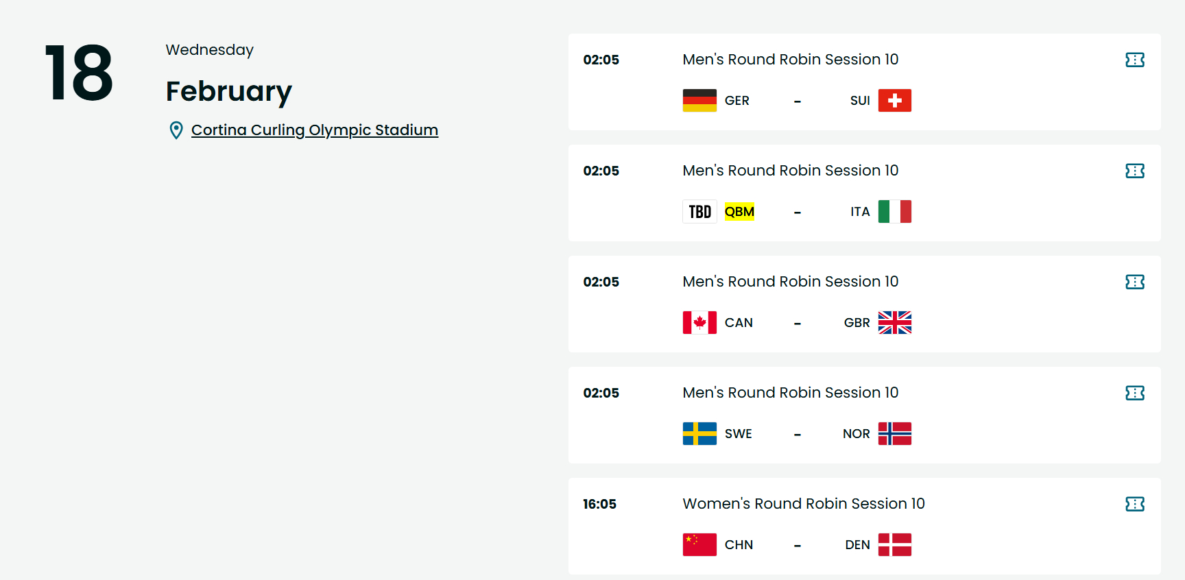 【春节观赛】2026米兰奥运中国冰壶男队赛程(北京时间)2.12 2:05 中国-捷克 21:05 中国-瑞士2.13 16:05 中国-加拿大2.14 21:05 中国-德国2.15 16:05 中国-瑞典2.16(除夕) 2:05 中国-挪威2.17(初一) 16:05 中国-美国2.18(初二) 2:05 中国-意大利 21:05 中国-英国(苏格兰)