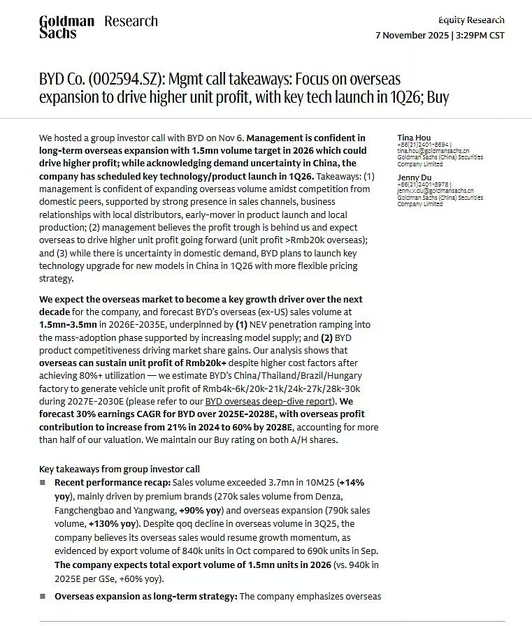 最近汽车板块整体压力不小,但比亚迪却成了资本眼里的“硬通货”。高盛、花旗、摩根士丹利这些国际大行,最近半年密集发研报,清一色给出“买入”或“增持”评级。他们的核心逻辑很一致:海外市场会是比亚迪未来十年的主引擎。资本敢这么投,底气来自实打实的战绩。2025年前11个月,仰望、腾势、方程豹这几个高端牌子卖得越来越起劲。更夸张的是出海成绩,前11个月海外销量干到了91万多辆,同比直接翻倍,全年破百万辆基本没悬念。这可不是单纯把车卖出去,而是靠着自己造滚装船、在海外建厂、产品因地制宜调整,一步步把全球的增量空间给打开了。市场发展预期一片向好。支撑这一切的,是比亚迪那条被验证过的全产业链优势和不停歇的技术迭代。从刀片电池到DM-i混动,再到易三方技术,核心东西掌握在自己手里,抗风险能力自然强。行业洗牌期,靠着清晰的战略、稳扎稳打的销量和技术底子,比亚迪确实在这轮调整里跑出了自己的节奏。