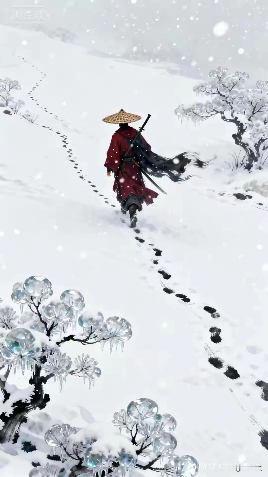 冬夜雪径,月下红梅 雪飞柳絮梨花, 梅开玉蕊琼葩。 雪花无声拂旧梦, 白絮漫天映月华。