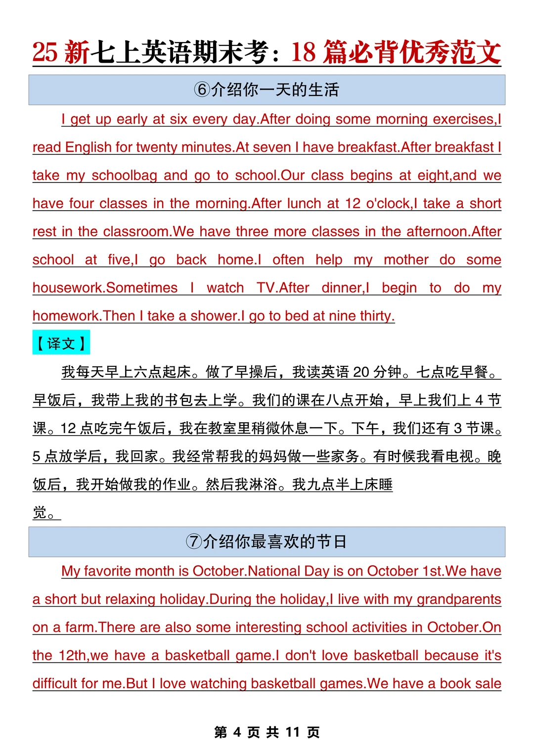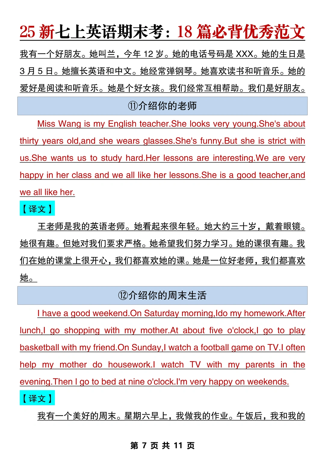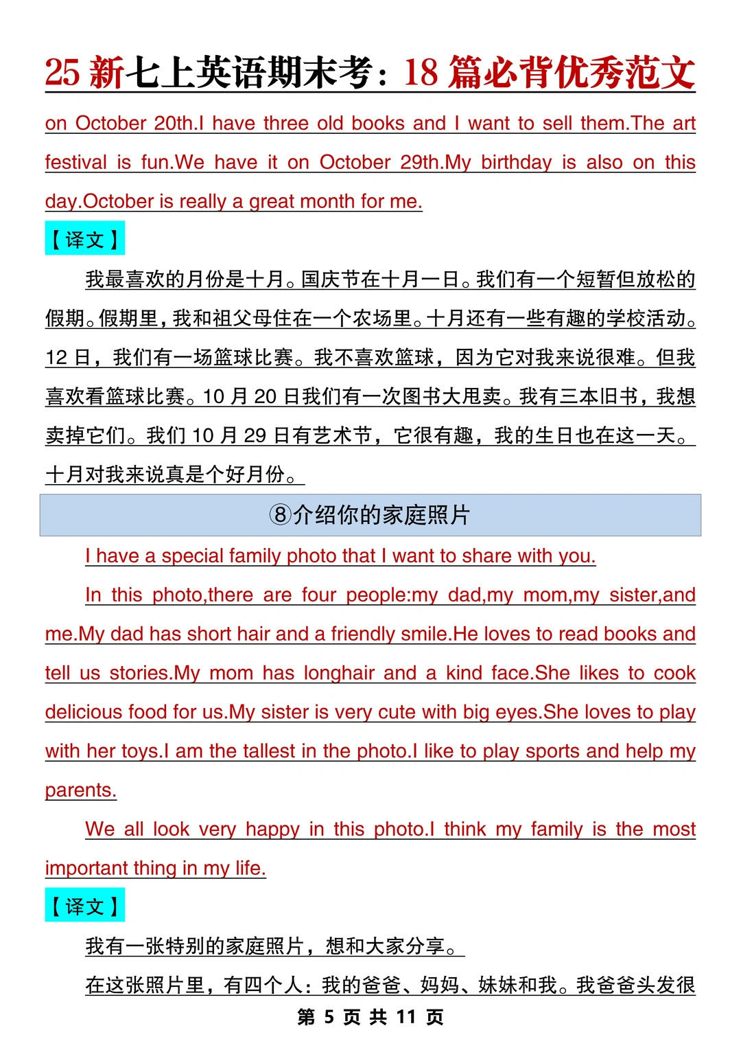 新七上英语期末作文已出🔥就这18篇直接背‼️