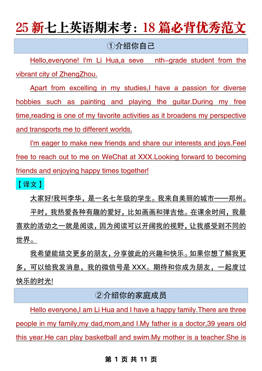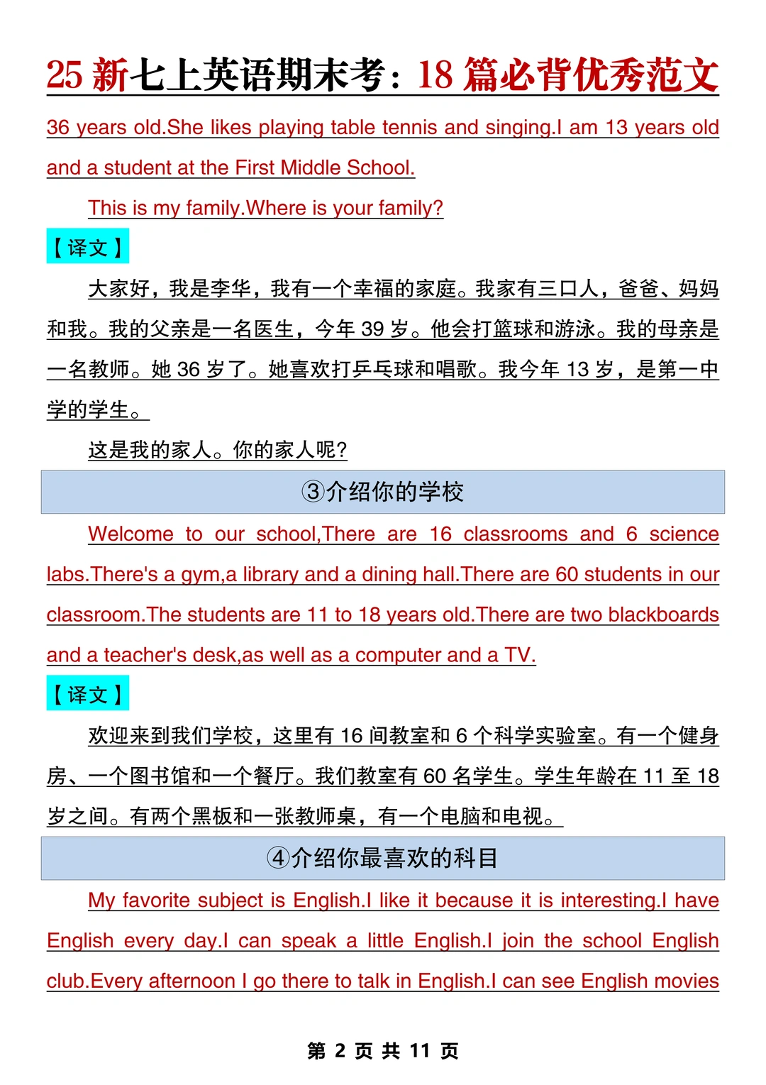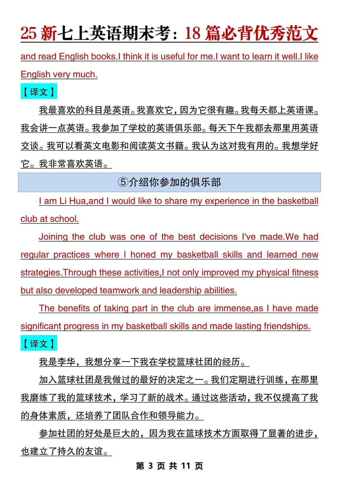 新七上英语期末作文已出🔥就这18篇直接背‼️