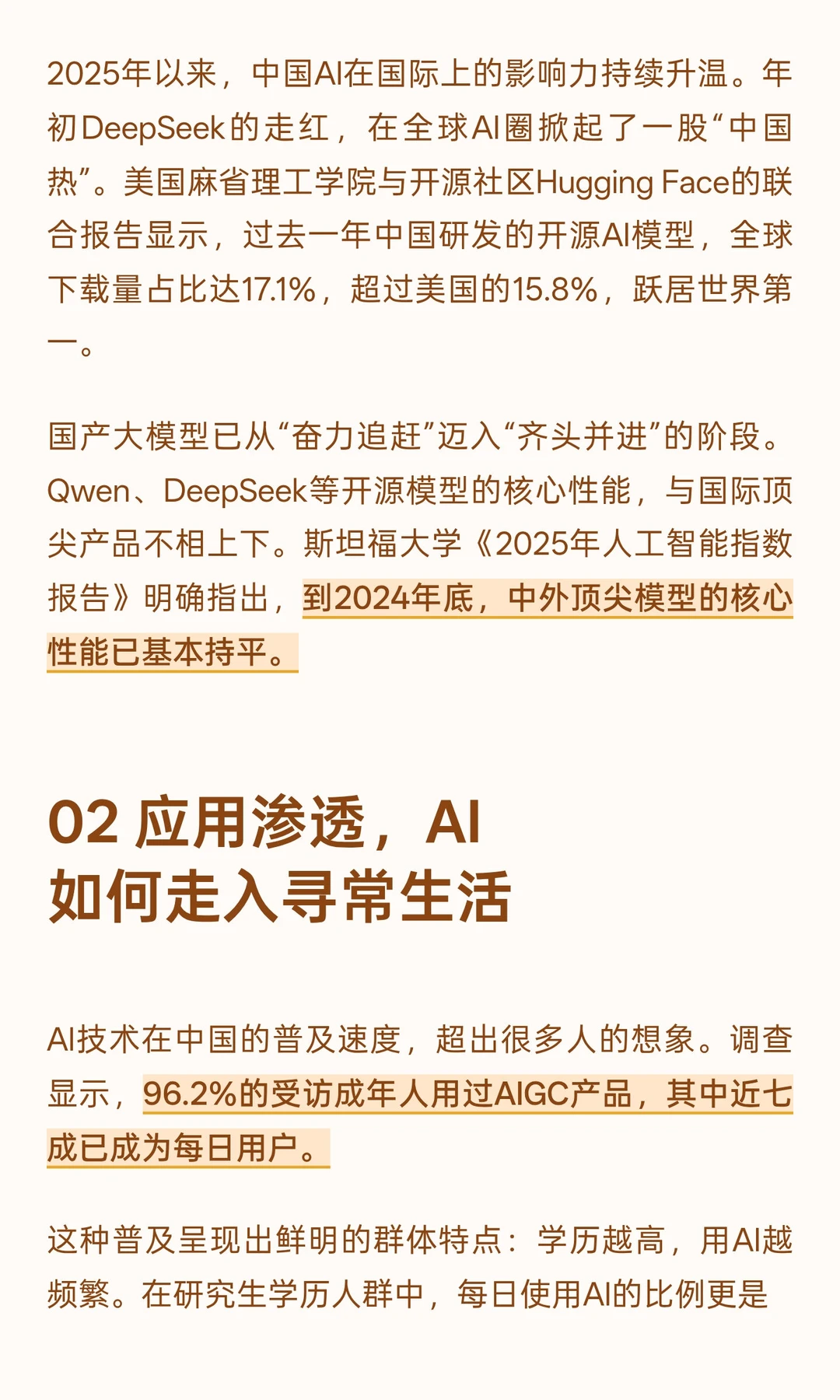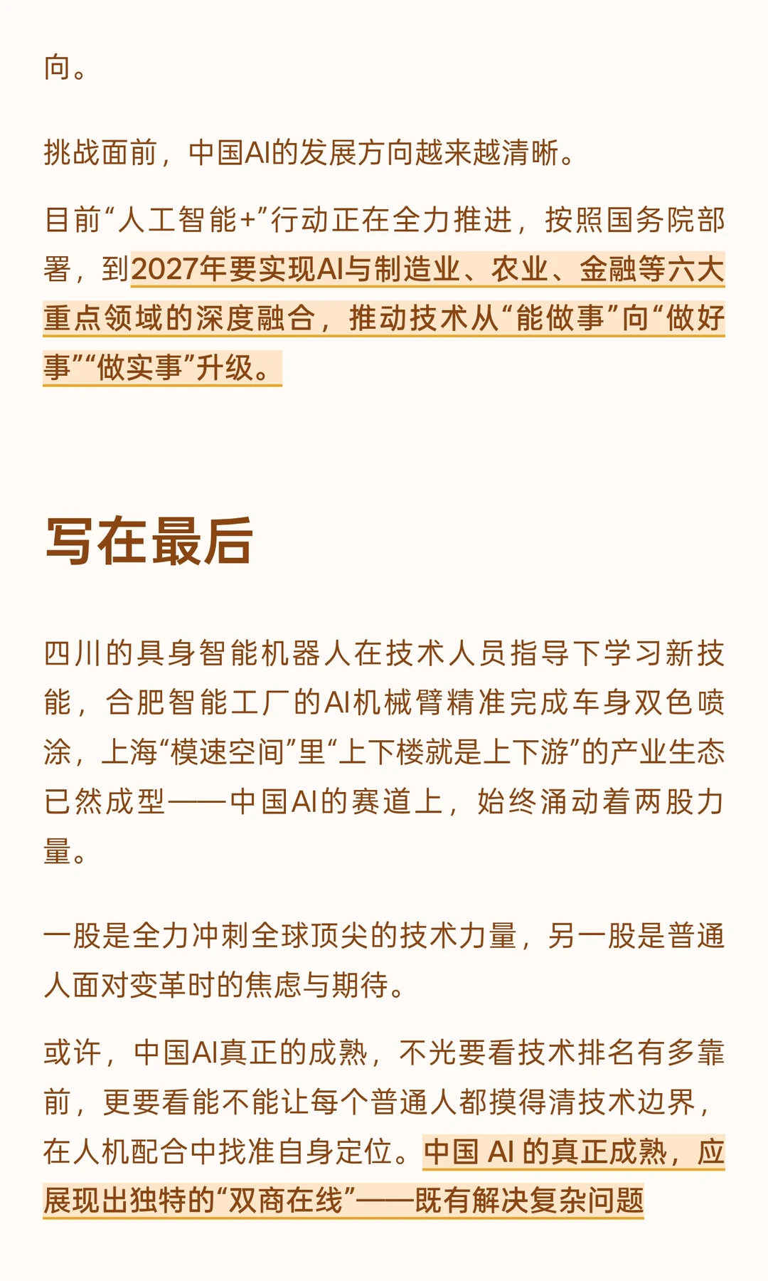 中国AI技术全球领先,大模型表现突出,应用广泛。