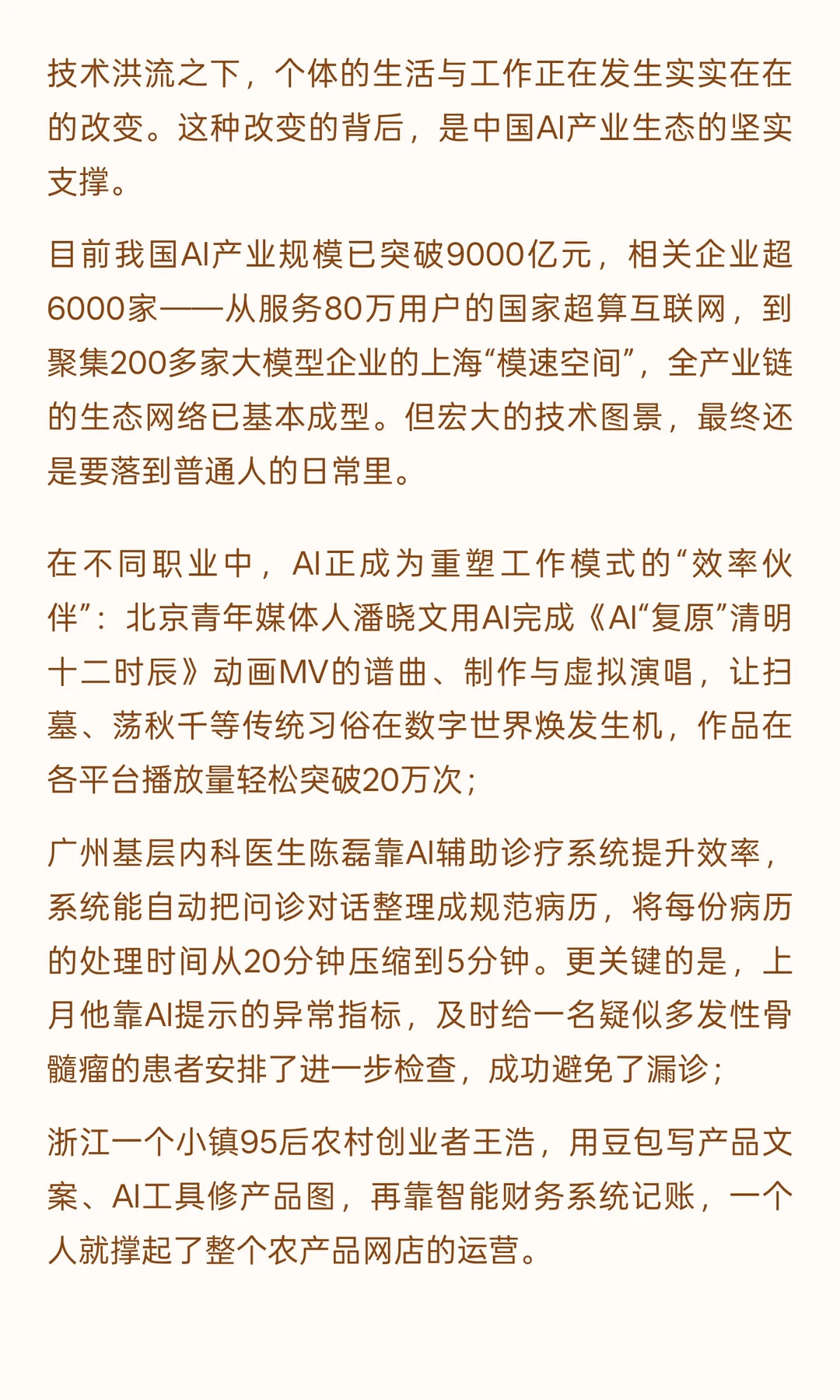 从大都市到小镇,AI正褪去“黑科技”光环,悄然潜入中国百姓的日常生活中。