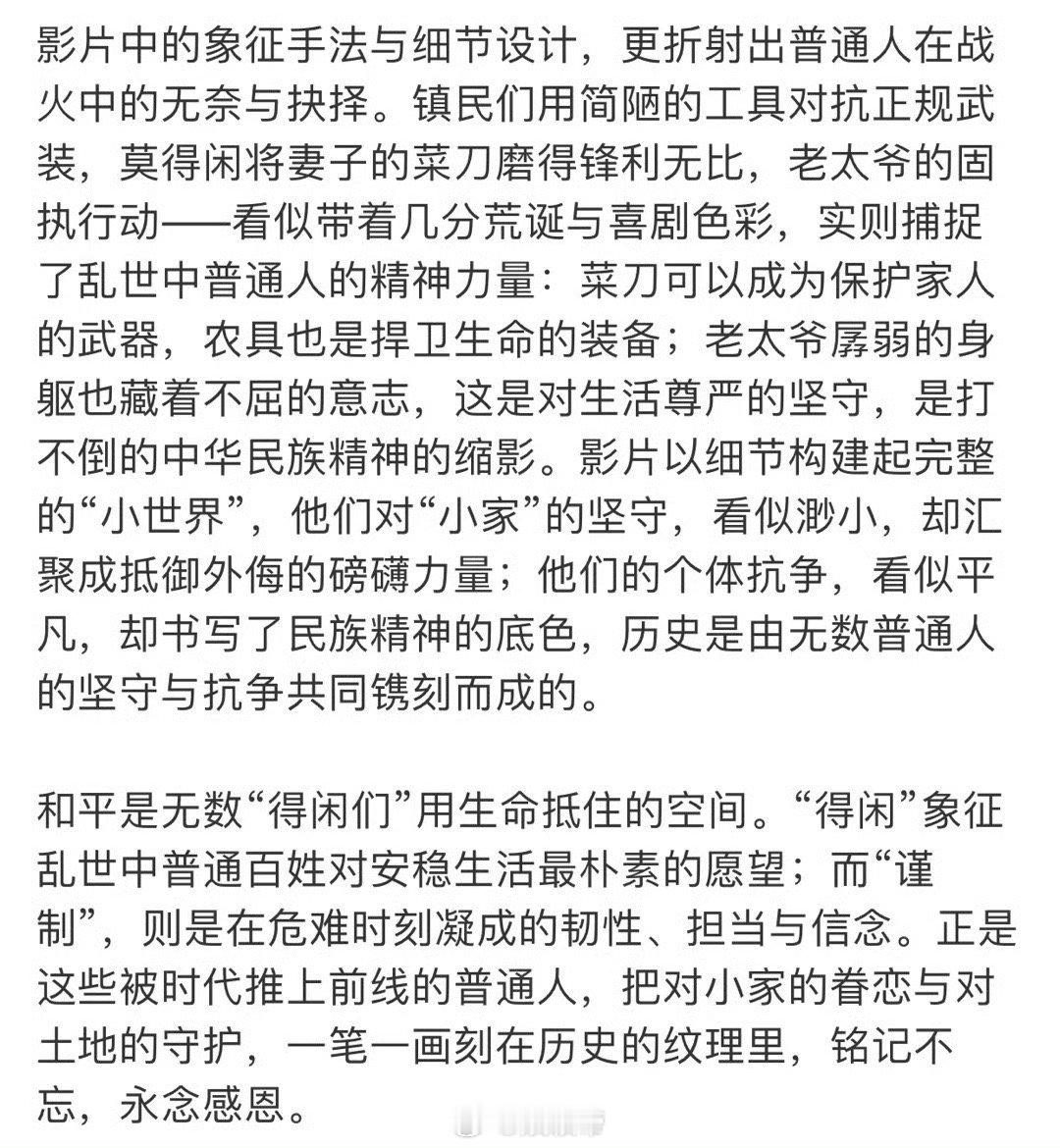 央视网文娱评得闲谨制当战争来临,普通人的选择定义着生命尊严。《得闲谨制》获央视网文娱认可,影片通过微观视角,在硝烟中捕捉人性光辉,展现中国人特有的生存智慧与精神高度。