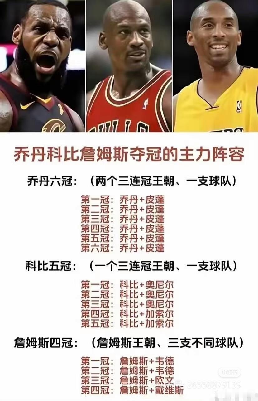 NBA三大球王到底该怎么排名? 乔丹主要队友只有皮蓬。 科比主要队友是奥尼尔。 詹姆斯队友很丰富,热火是韦德,骑士是欧文,湖人是浓眉。 感觉乔丹最厉害,科比和詹姆斯是两种模式啊。[大金牙]