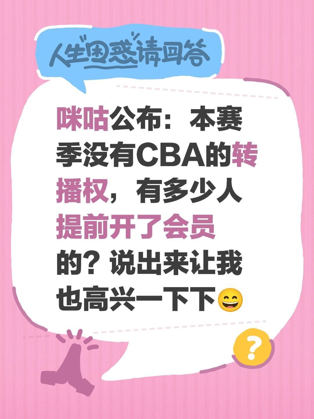 咪咕公布:本赛季没有CBA的转播权,有多少人提前开了会员的?说出来让我也高兴一下下😄