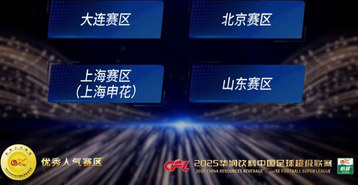 2025中超联赛优秀人气赛区 中足联颁奖典礼 2025赛季中国足球职业联赛颁奖仪式,获得中超优秀人气赛区的是:大连赛区、北京赛区、上海赛区(上海申花)、山东赛区。