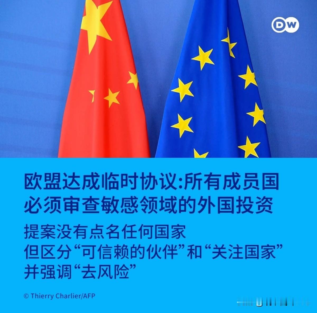 欧盟这是摆明了要对我们使绊子!12月12日,根据德国之声报道,欧盟达成一项临时协议,要求所有欧盟成员国在敏感领域审查外国对欧盟的投资。根据新规定,外国在军事及军民两用设备、“超关键”技术(如人工智能、量子技术与半导体)、关键原材料、关键能源、交通或数字基础设施,以及选民系统或数据方面的投资,都必须接受审查。 该规定声称,要求所有欧盟国家必须审查外资项目。如果项目构成安全威胁,就要阻止投资。若投资者由外国公司控制,即使投资发生在欧盟内部,也将纳入审查。很显然,欧盟虽然没有点我们的名,但是这一规定针对我们的意图非常的明显。欧盟自身一贯标榜资本自由流动原则,并构建了高度自由的共同市场,而今却出台新规搞“双轨制”审查,这无疑非常的让人咋舌。 欧盟甚至连外国公司控制主体的欧盟内部投资都审查,这就是典型的歧视外资。而且该新规以“安全威胁”为审查依据,但是在执行的过程中,欧盟无疑有极大的弹性空间,如果欧盟滥用安全威胁,恐怕我们对于欧洲合理的投资,都会受到极大的影响。很显然,现在的欧盟越来越走向封闭,越来越走向保护主义,这意味着欧盟极有可能会酝酿更为强硬的对华政策,而我们也不得不警惕。