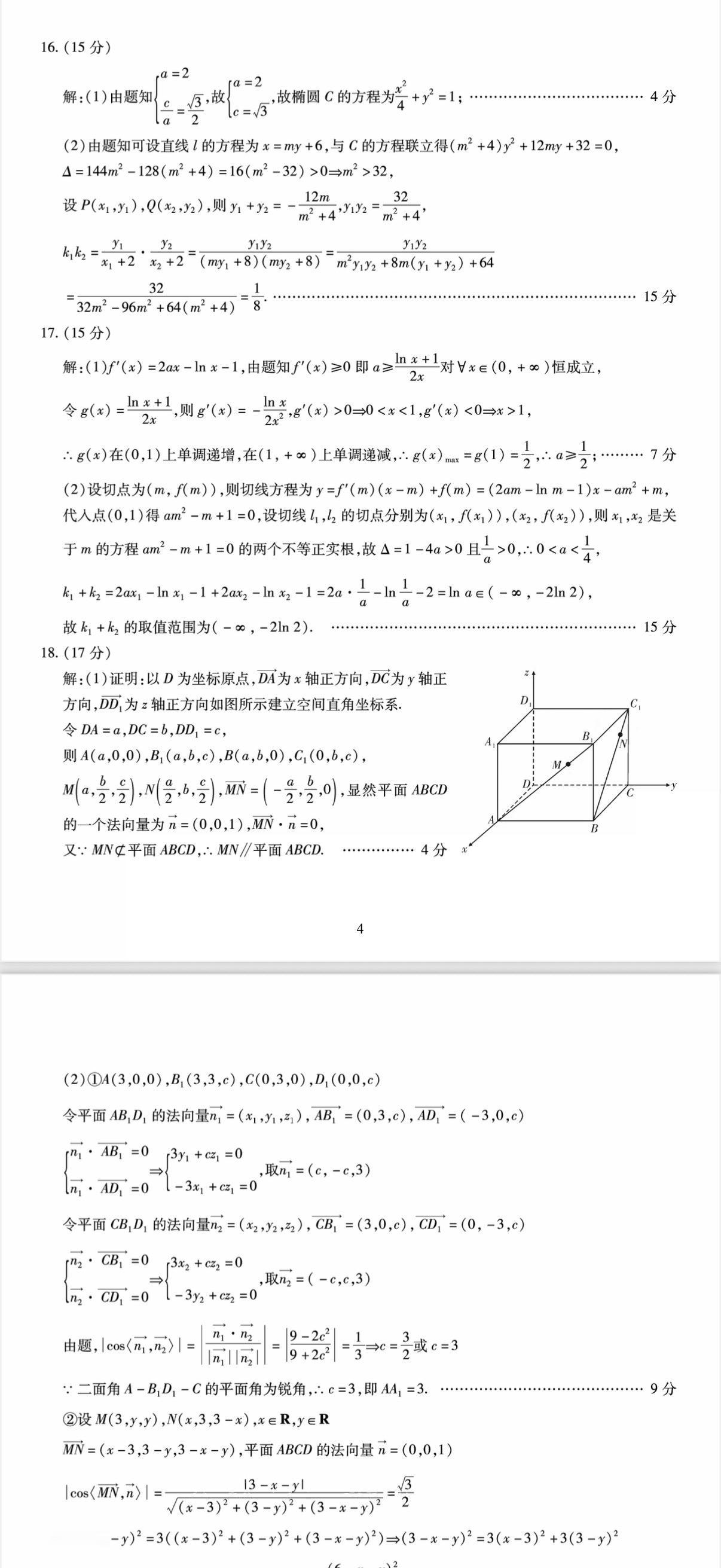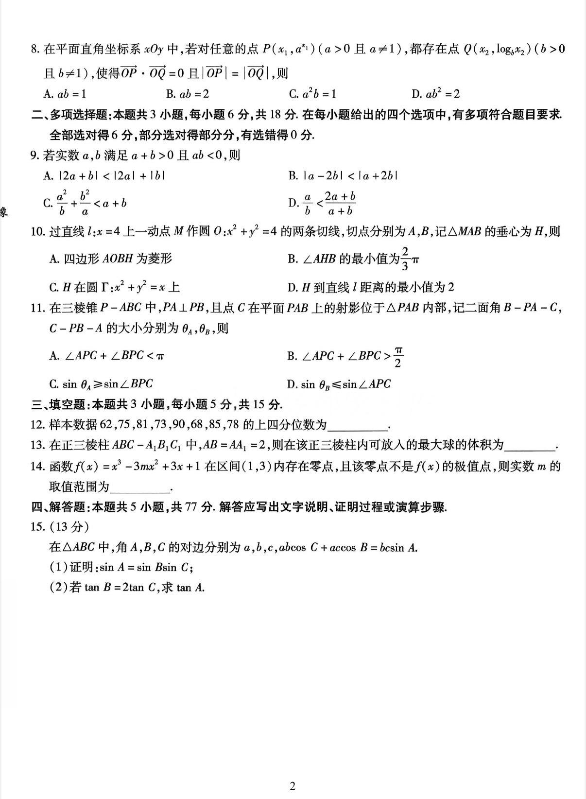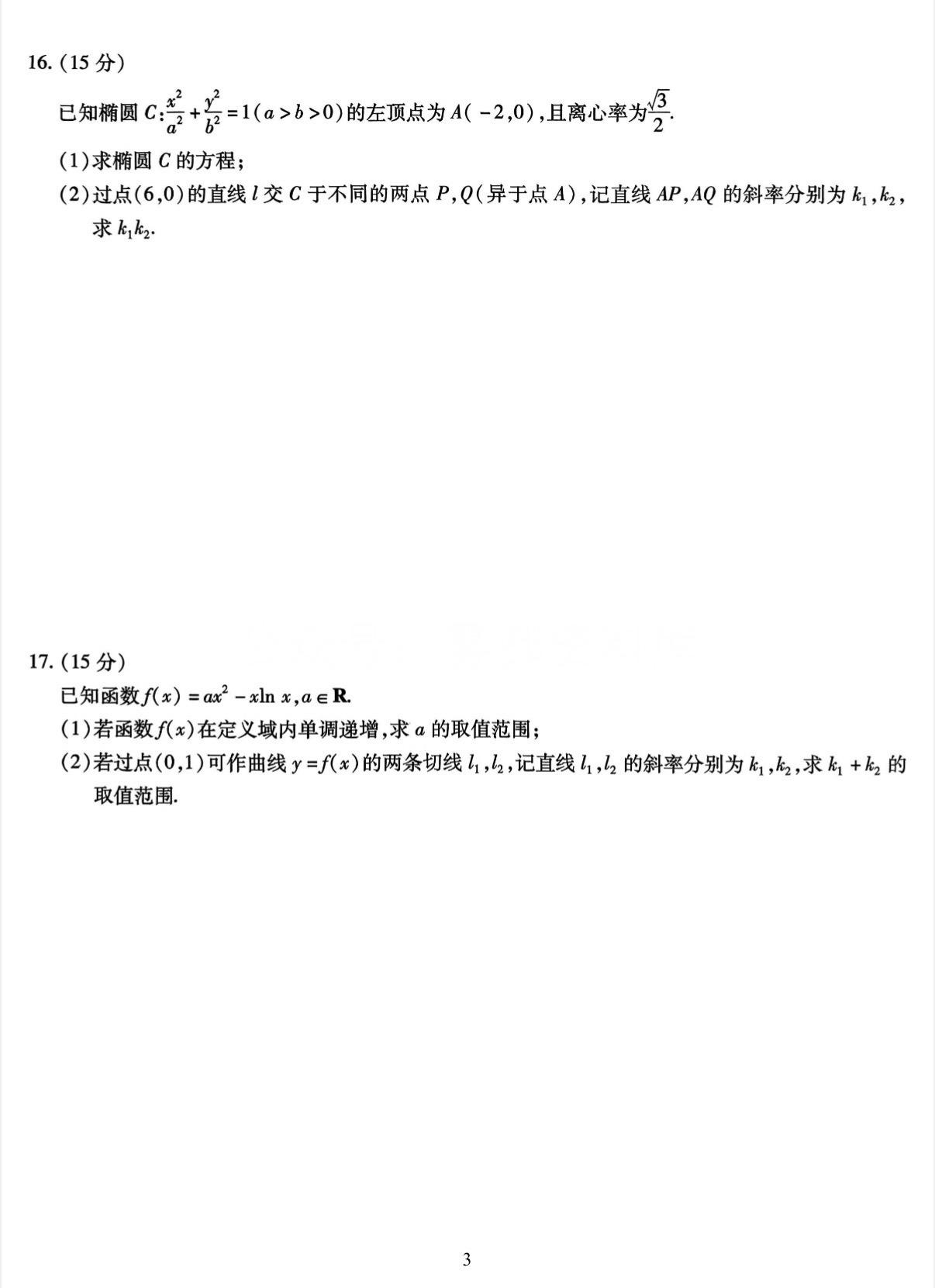 武汉市2026届高三九月调考数学试题及答案,试题结构回到传统模式,难度较大!
