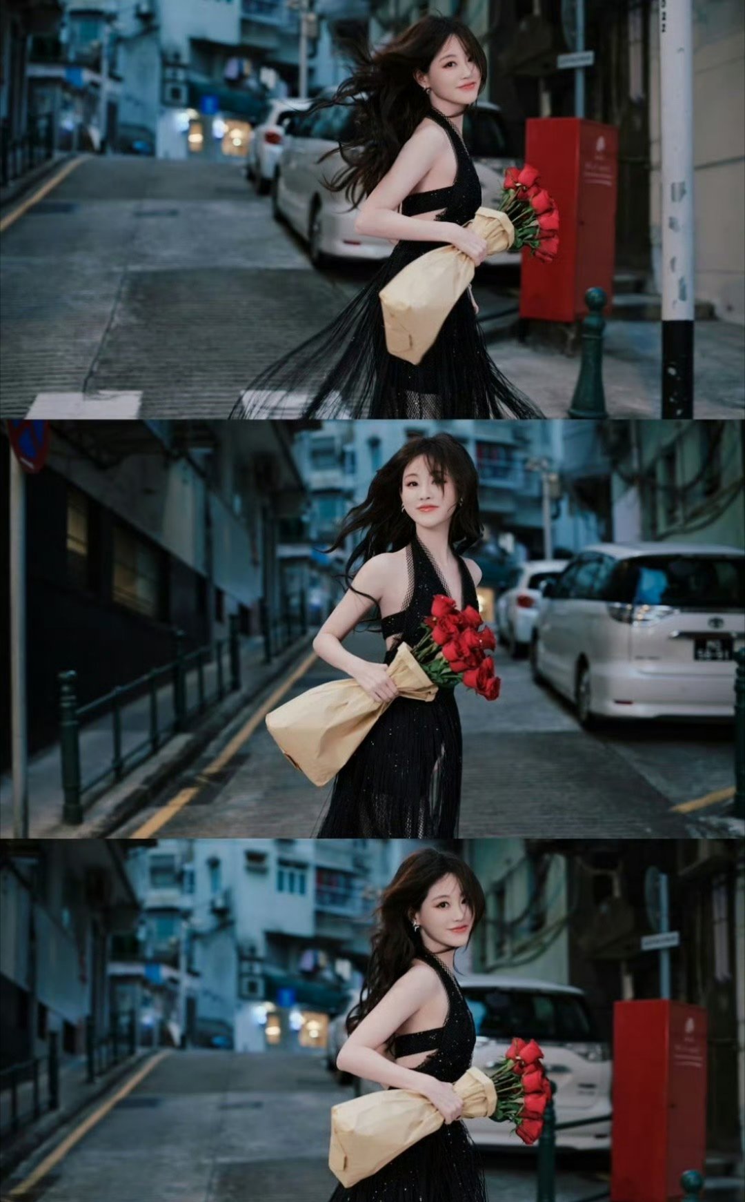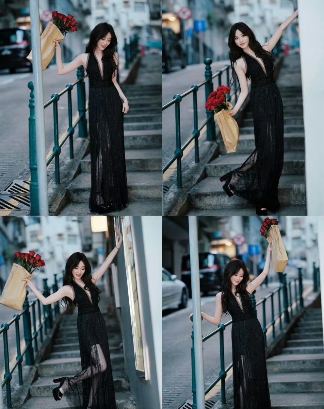 祝绪丹昨天两套造型 昨天祝绪丹的两套玫瑰主题造型真是惊艳到我了!白天那身黑色网纱裙配上红玫瑰,像是故事里走出来的暗夜玫瑰,神秘又带着冷艳。走在街头随便一个回眸都充满电影感,黑色和红色碰撞出强烈的视觉对比,网纱的轻盈和玫瑰的浓烈结合得恰到好处,整体氛围感直接拉满。