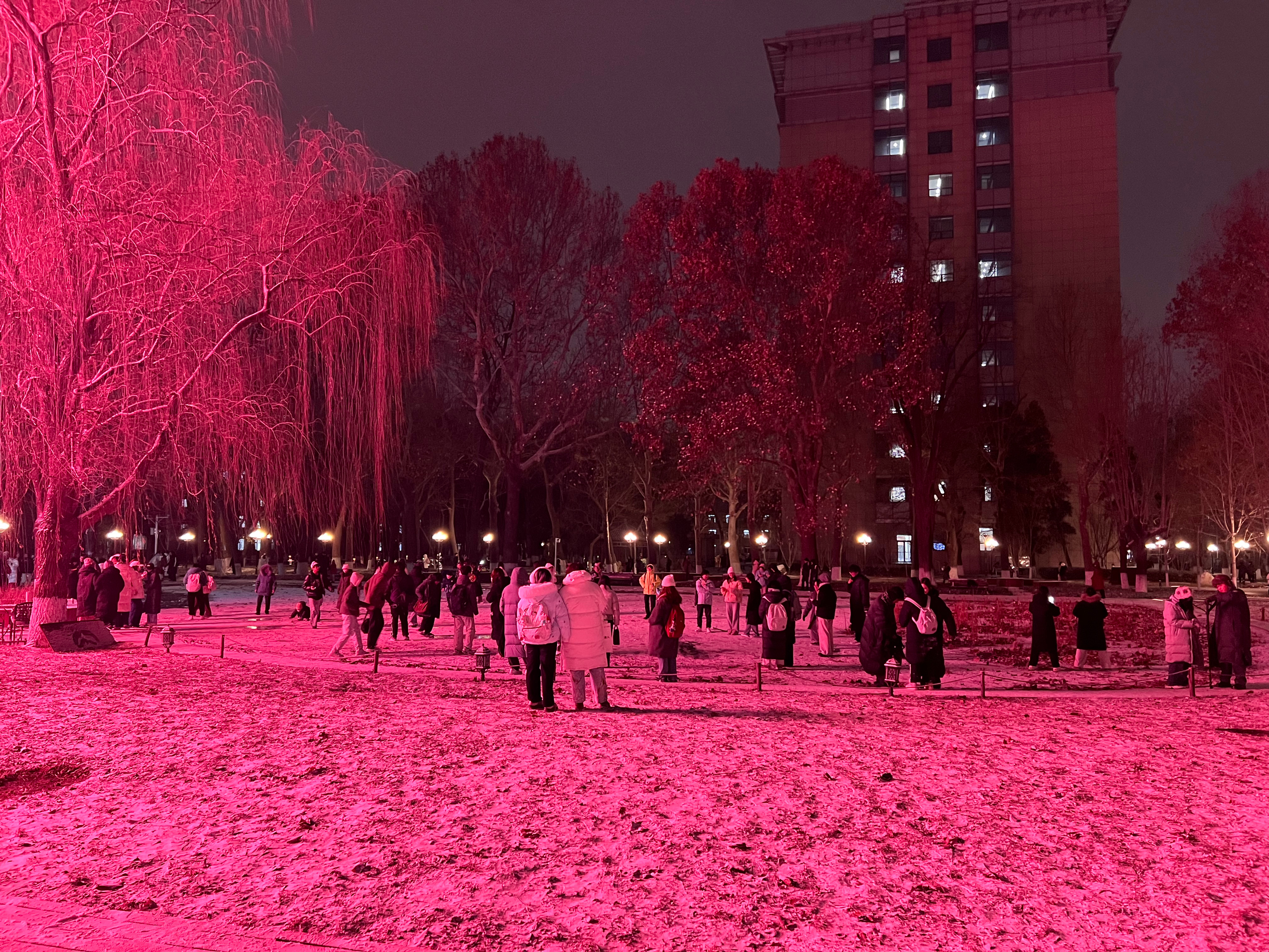 我是发现了,下雪湖面结冰,最开心的是大学生,全去滑冰了2025初雪摄影大赛