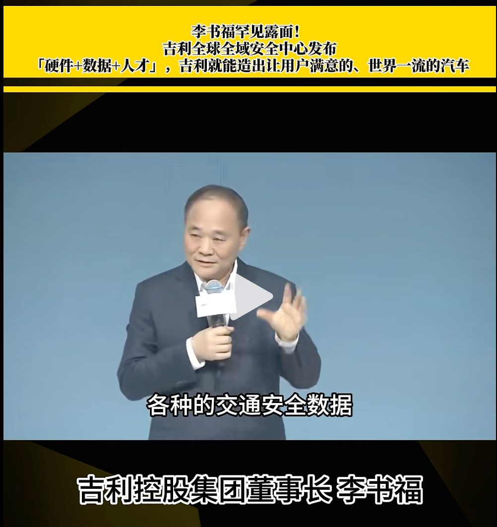 李书福称五星只是安全的门槛 罕见露面的李书福,坦言,【硬件+数据+人才】,吉利就能造出让用户满意,世界遗留的汽车硬件,就是刚刚落成的安全中心数据,沃尔沃的真实事故数据积累人才,吉利的技术运营团队相比于新车发布,李书福把造车的底层逻辑与底线讲得很深入浅出了