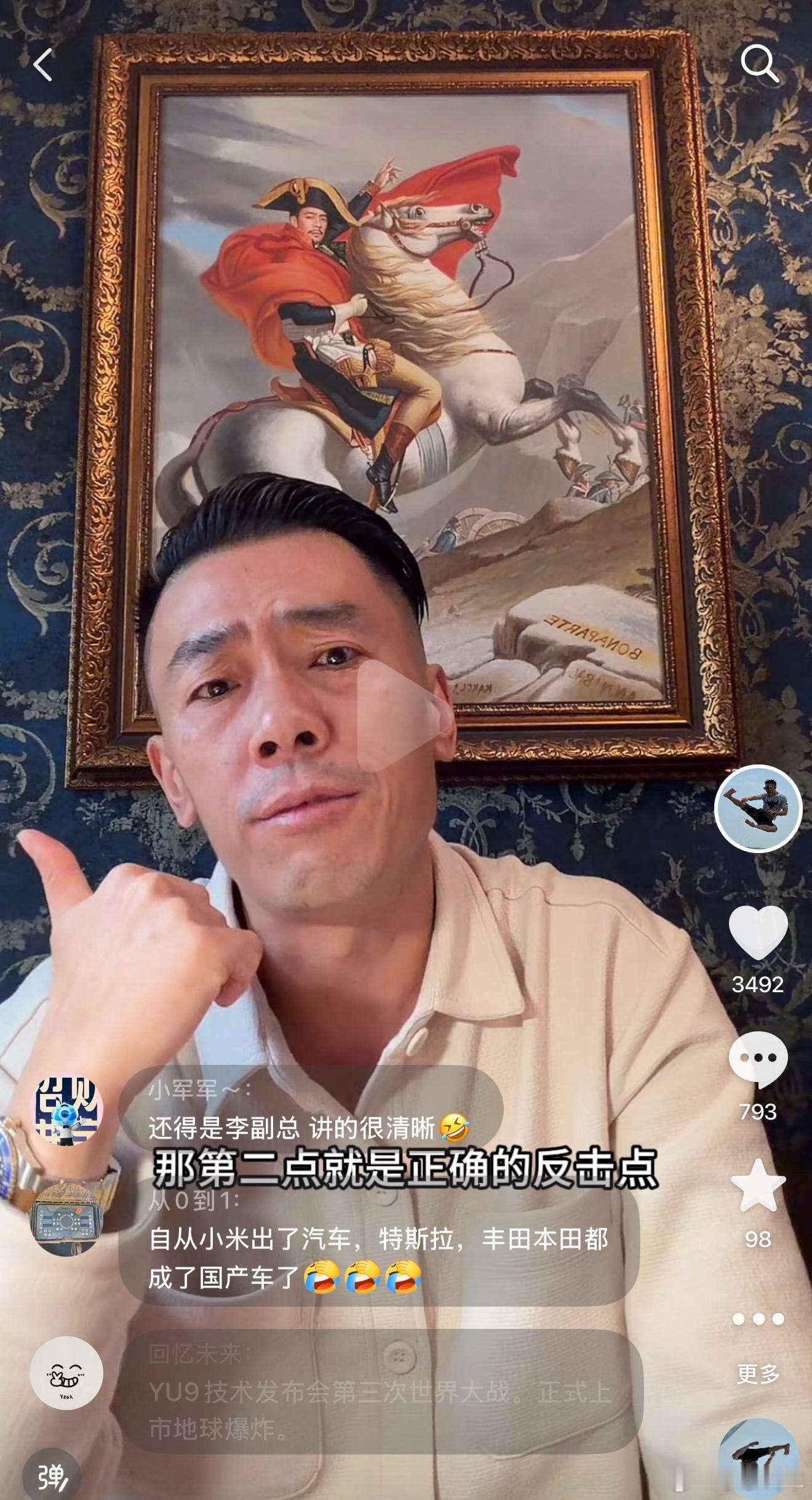 小李飞车 评论区有大聪明说我买小米为了流量总也不晒ultra了是不是押错宝了卖了,首先我是真喜欢不是为了流量,流量呢我发小米su7ultra已经一个多亿播放了没有比我高的,天暖了还得跑赛道呢谢谢!另外你们看看村支书那个事儿李副总中午的视频是不是和小米下午的回应一样一样的,夸夸李副总好吗?他真的好帅好有水平呀我一个男的都喜欢