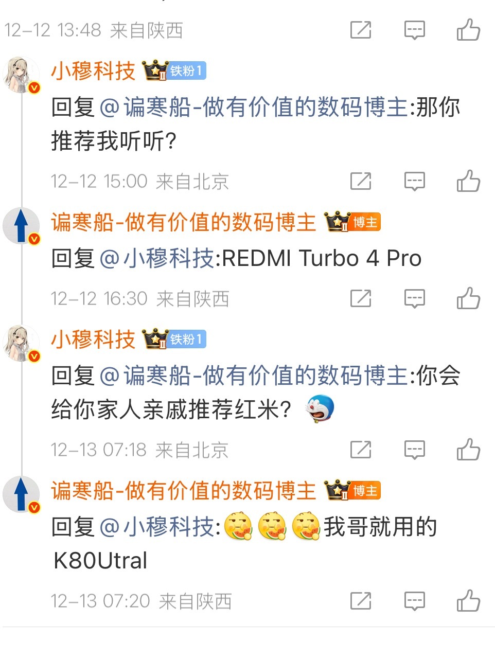 这是我和小穆的交流,红米到底怎么了?我家里人一直用,也没啥问题啊。性能强续航好价格实惠。