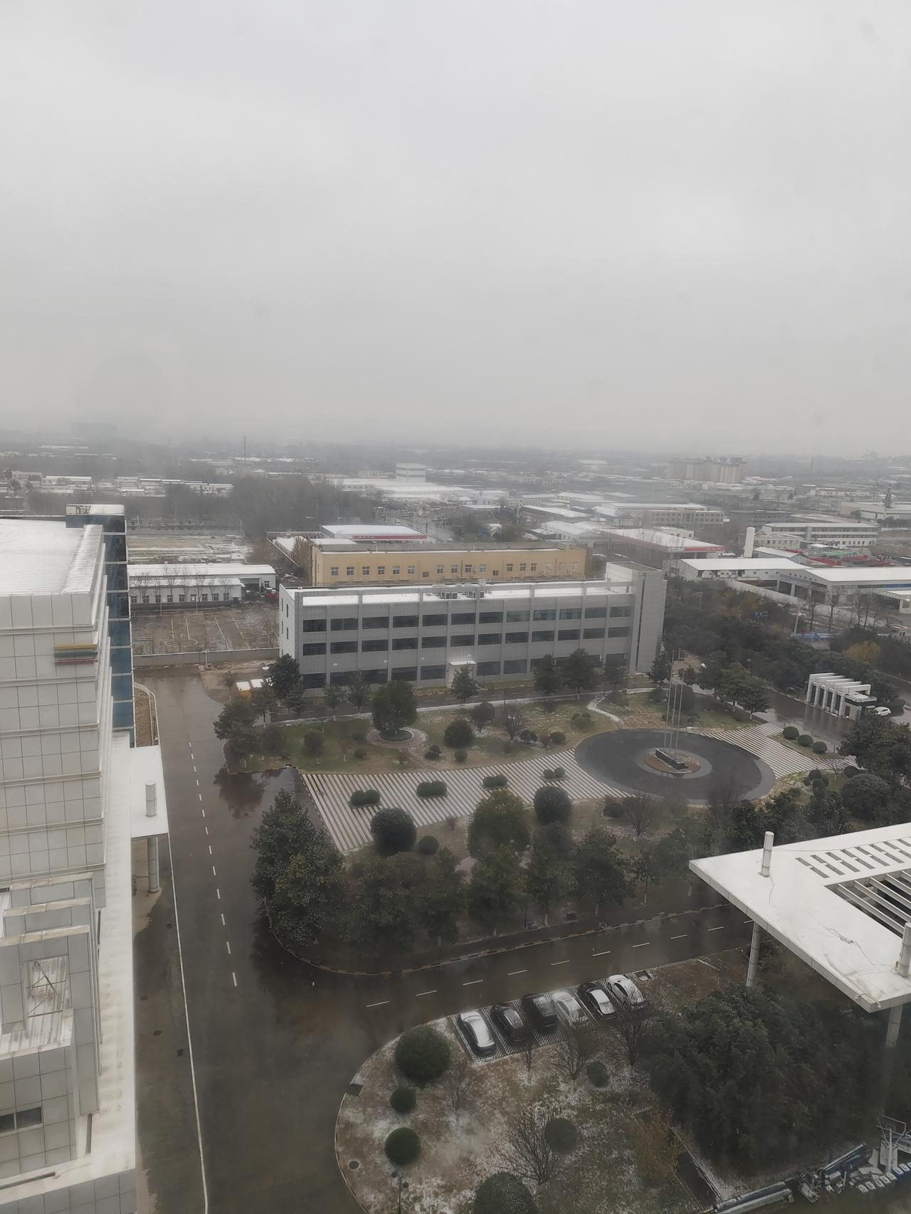 雪后雾锁园区,冬日氛围感拉满 清晨推开窗,园区被一场薄雪裹上了银边,却又被漫天薄雾笼着,远近的楼宇都晕开了轮廓。 湿漉漉的路面映着灰白的天,偶有车辆驶过,碾开一地融雪的痕迹。办公楼的屋顶积着浅浅一层雪,和深灰色的墙体衬出清冷的冬日质感。绿化带里的树木还挂着残雪,墨绿的枝叶间缀着白,倒添了几分水墨画的韵味。 这样的雾雪天,少了平日的喧嚣,园区里静悄悄的,只听得见融雪滴落的轻响。站在高处望出去,城市像被按下了慢放键,朦胧中反倒生出一种别样的温柔。 你那里的冬日,又是什么模样呢?