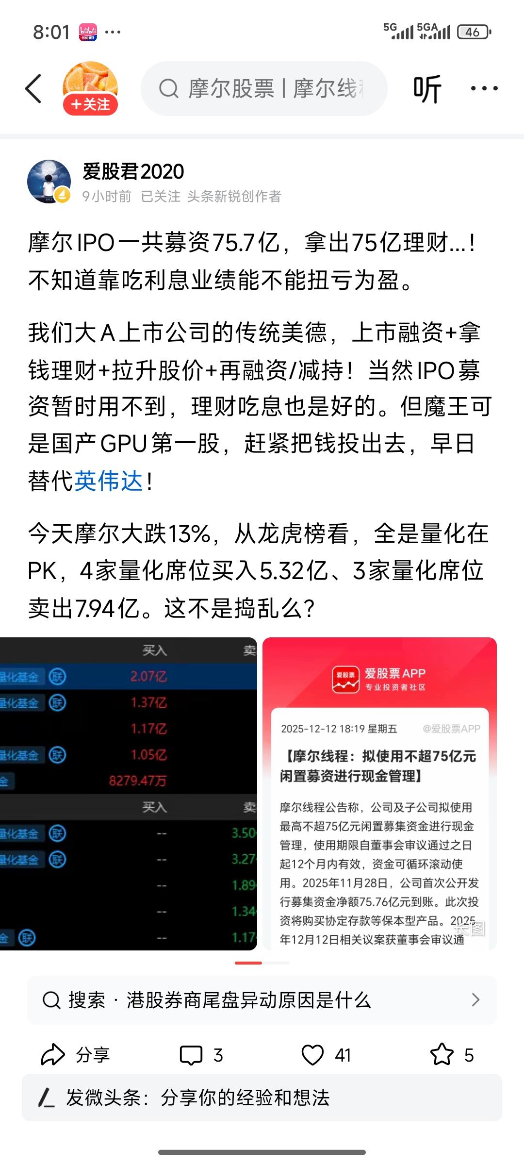 目前市场上最热门的摩尔股份,实在是太奇葩了!我们股民将辛辛苦苦打工积攒的钱投给它,结果它拿到了高达七十五点几个亿的募资款,却声称要将这笔钱用于现金管理、投资理财。它难道不应该立刻把钱投入到各类科技项目中扩大生产,提升技术,改造技术科研,奋起直追美国科技吗?要是既没有生产线需要扩张,也没有技术亟待改造,那这些企业积极募资又是为了什么呢?这笔钱难道不该投向更急需资金的科技企业吗? 摩尔资本 摩尔王者归来 摩尔指数 摩尔期权 摩尔年终大促 摩尔计算 深圳摩尔创投