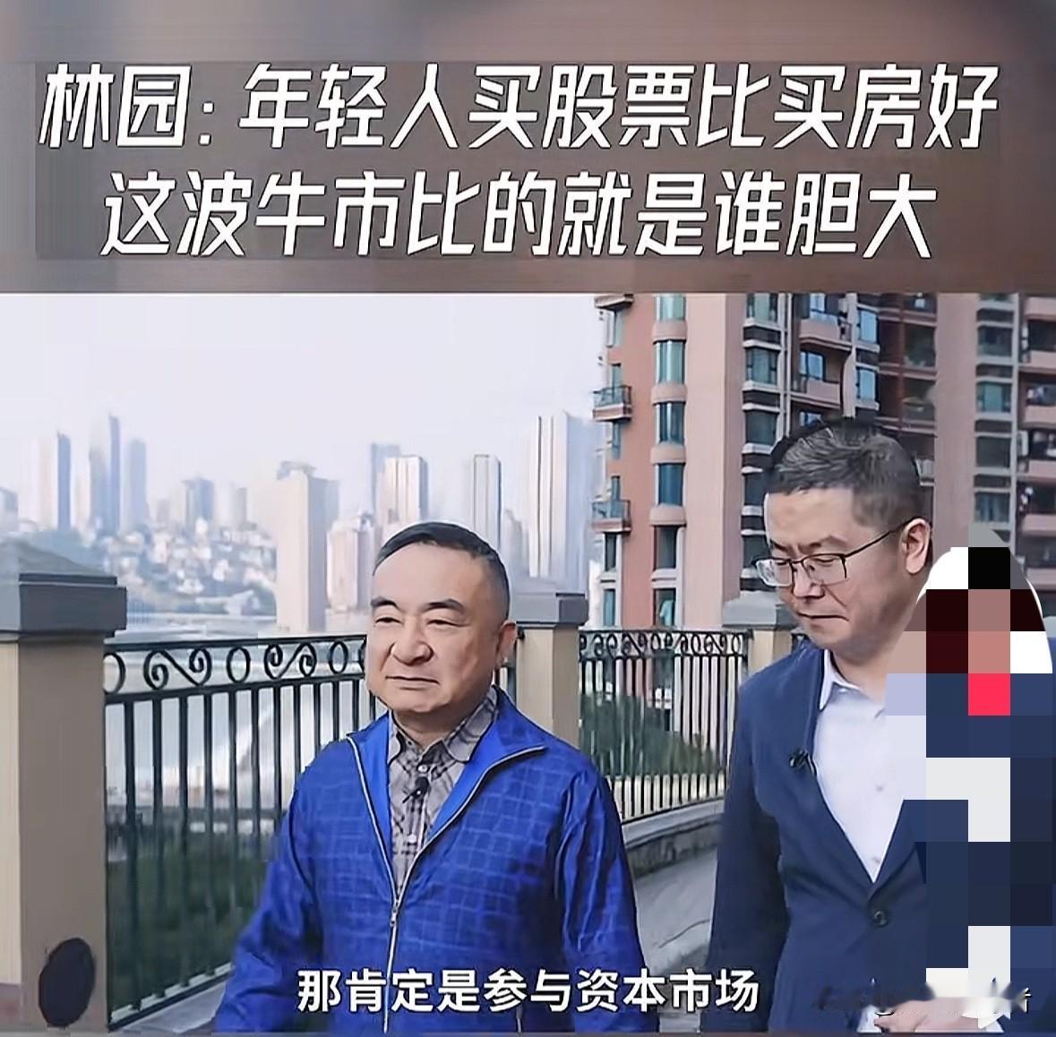 今早,刷到了被称为“民间股神”“中国巴菲特”的林园的视频。在视频中,林园接受采访,当被问到作为投资大师,对年轻人有何建议,比如是买房还是炒股时,林园说,买股票没错,当下要积极参与,抓住这个大机会。现在就是“人有多大胆,地有多大产”的时候,这样的时机就在这几年,市场会迎来大爆发。