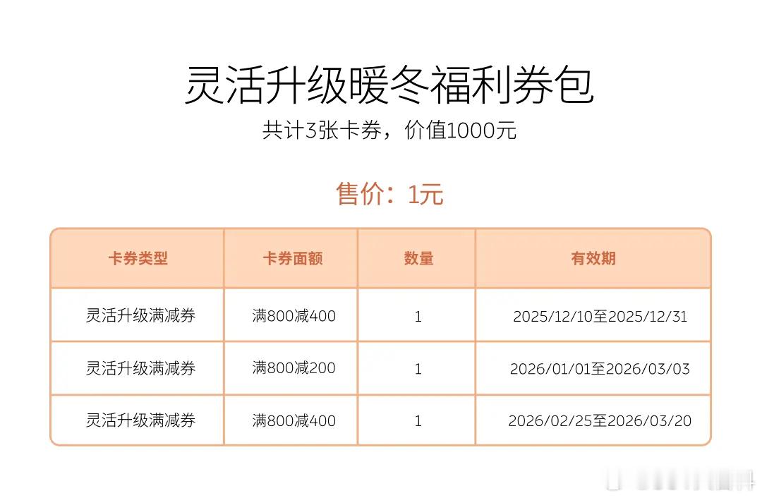 随着乐道 全国换电站电池翻倍计划的稳步推进,灵活升级也迎来暖冬福利——2000份灵活升级暖冬福利券包即日起限量发售2025.12.10-2026.3.20期间,下单月租订单最高可享5.8折优惠,全周期累计最高直省1000元福利券包内含2张满800减400、1张满800减200的大额满减优惠券,可用于灵活升级月租订单的现金抵扣,单笔电池升级月租仅可使用1张卡券,不可叠加抵扣;3张满减券需分别用于3个独立的升级月租订单,且每张满减券需满足“订单金额满800元”两张5折券、一张75折券,正好对应跨省返程过年的一来一回,以及一次在假设换电条件不便的老家地区纯电自驾,不得不说,乐道细心这一块还是可以的SUV大百科 大v聊车