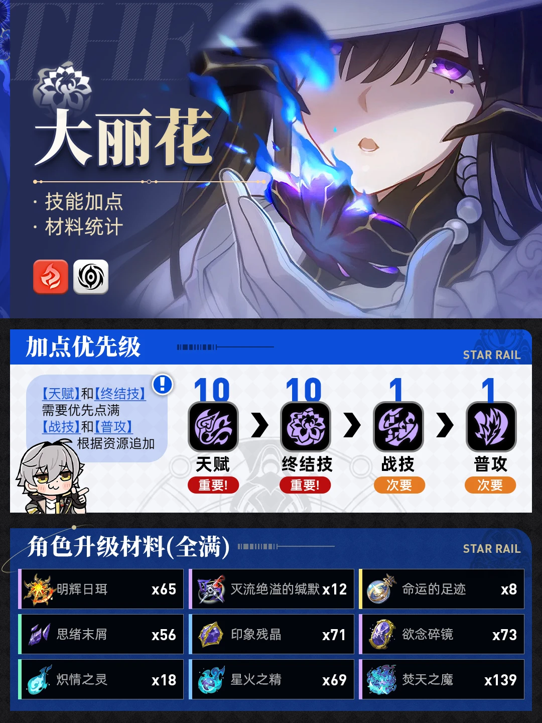 天赋10 / 终结技10 / 战技1 / 普攻1(含所有额外行迹材料)