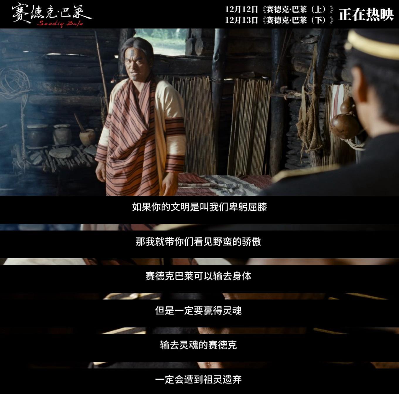 电影赛德克巴莱原型是台湾抗日 一直对《赛德克·巴莱》里台湾抗日先辈的坚韧着迷,这次上下部连映,多了130分钟,能更完整感受那段伟大历史,必须去看!
