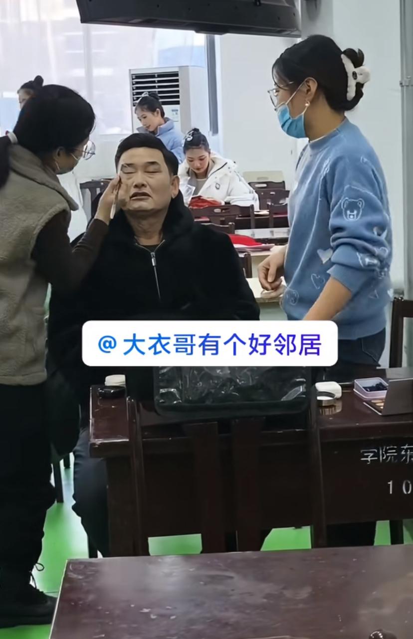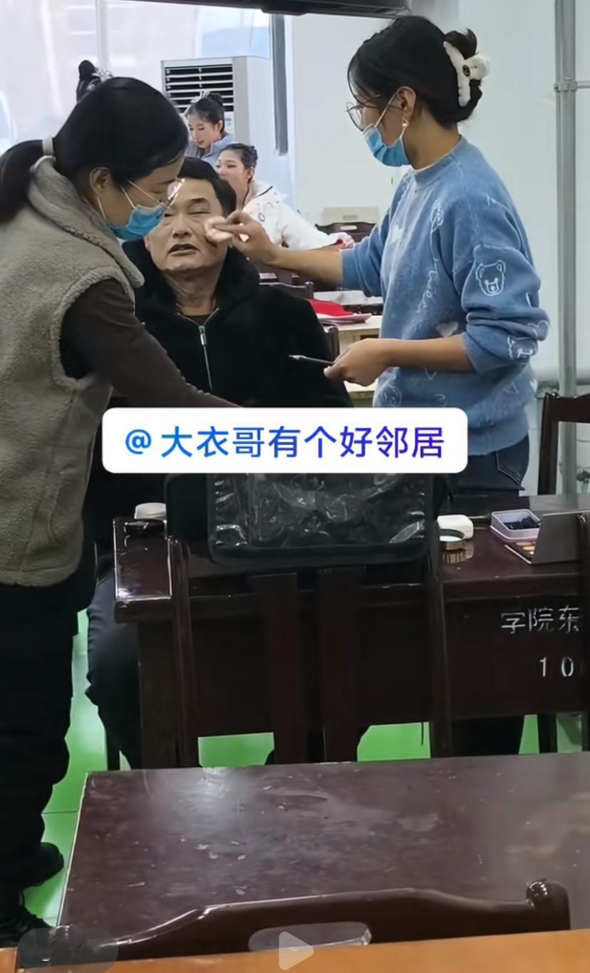 大衣哥好享受,两个化妆师给打扮,腻子上那么厚,还描眉毛了,不如正色登台,整个人变样了,不自然!