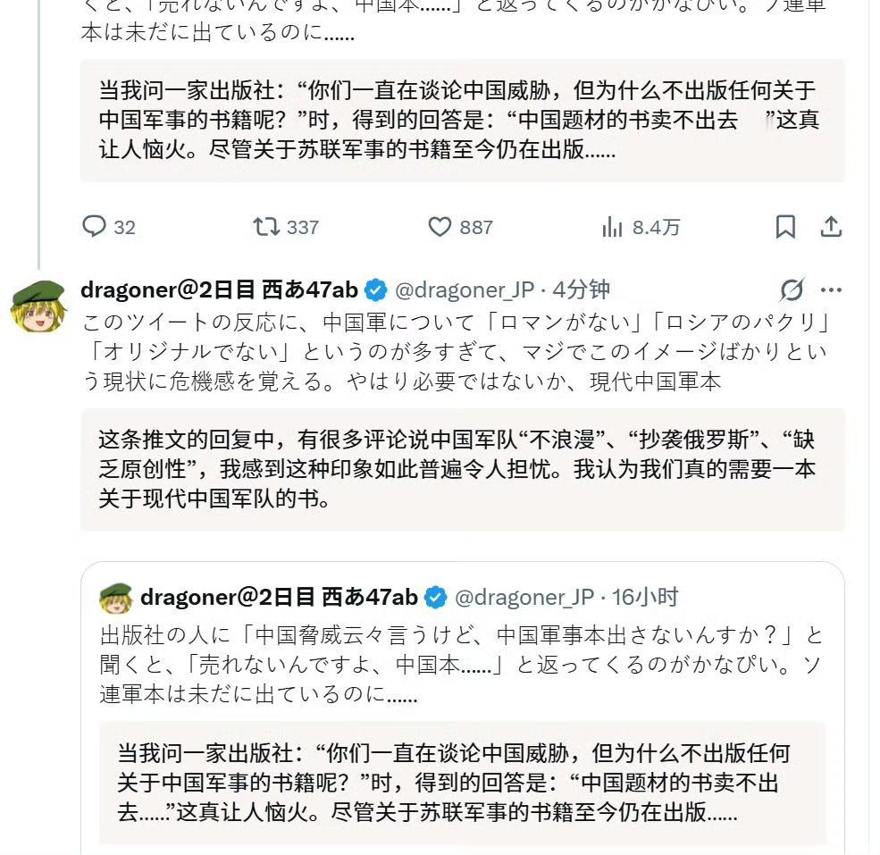 日本网友:日本出版社说关于东大军事的书籍卖不出去,所以不出版。但关于苏联的书籍至