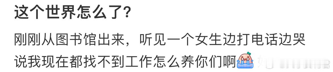 刚刚从图书馆出来,听见一个女生边打电话边哭说我现在都找不到工作怎么养你们啊