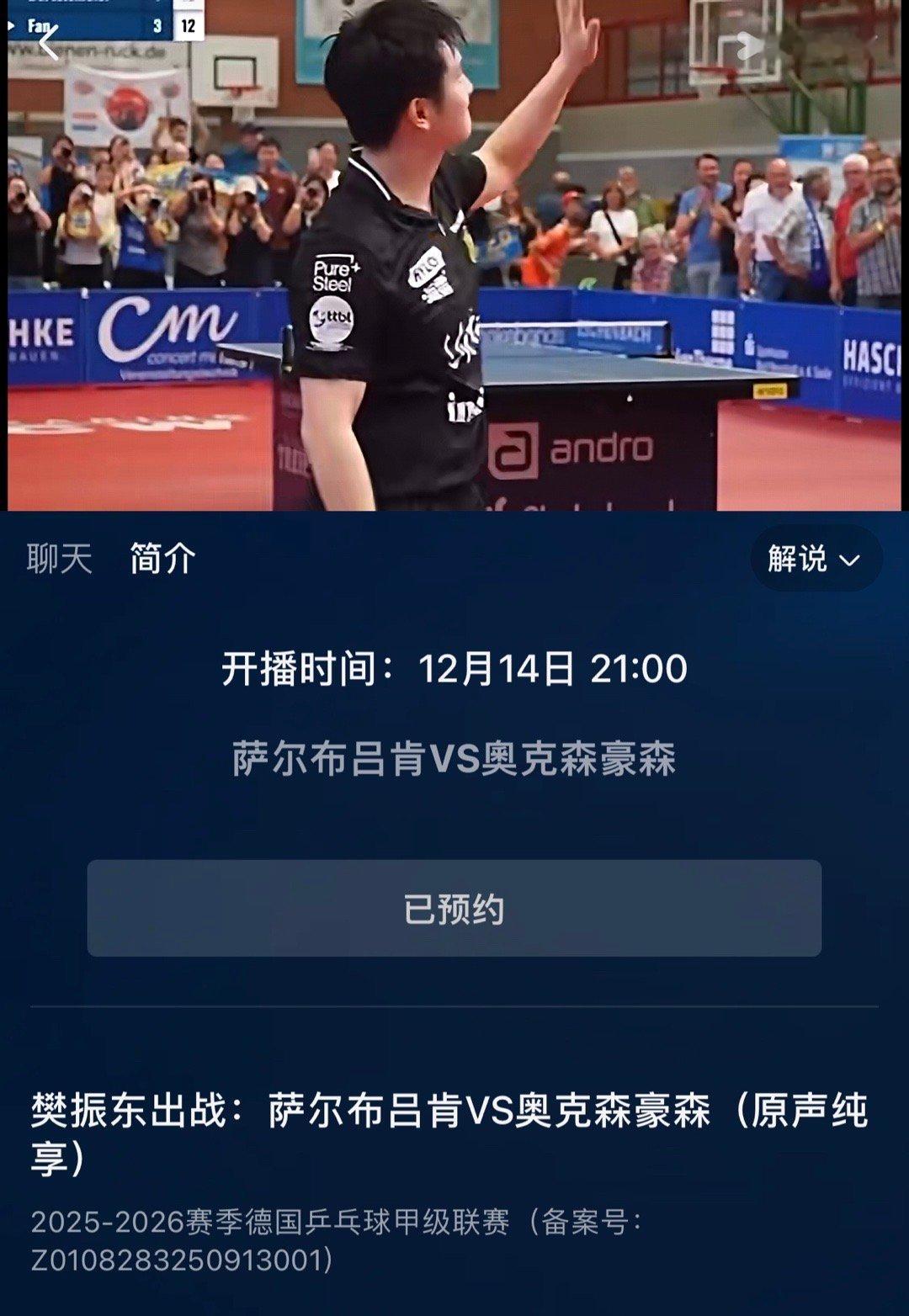 离樊振东重返德甲赛场还有一天零半小时(我又激动了,开始以为是今天,其实是明天)。大家预约了吗?