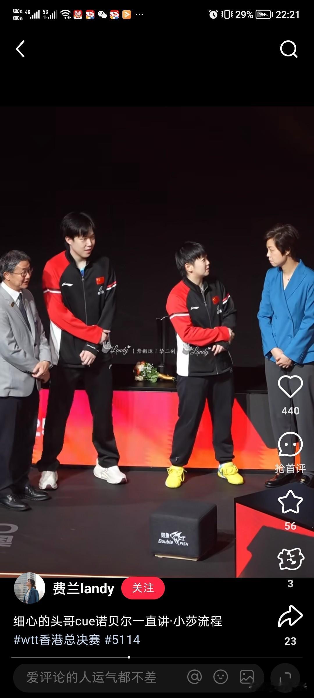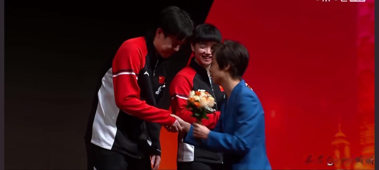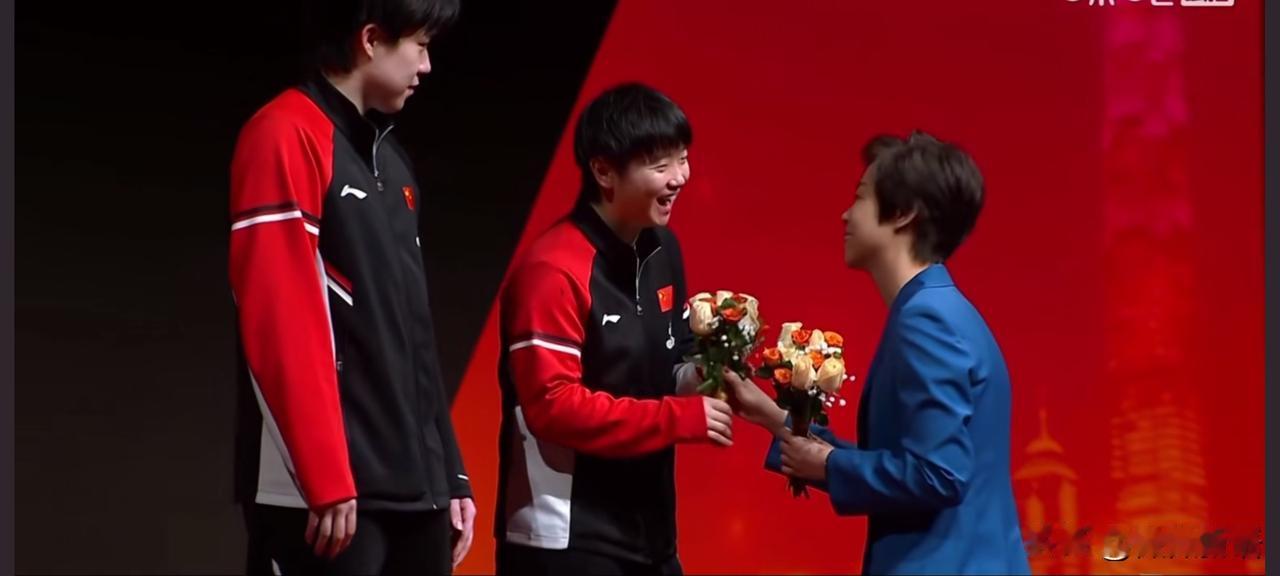 第一次见到他俩拿了亚军也笑的那么明媚,这就够了。原来张怡宁是今晚的颁奖嘉宾,怪不得一开始就看到她坐在前面看比赛,张怡宁给莎莎花的时候,也关心莎莎的伤势,莎莎看到自己的偶像,笑的特别开心,张怡宁也恭喜了王楚钦。平时莎莎和楚钦拿了冠军时,拍照都没有笑的这么好看,今天俩孩子很开心,不过看到了俩人的黑眼圈,给孩子累的。 今晚莎莎在单打的时候脚受伤了,她在打完第五局后退赛了,还以为混双也会退,没想到她坚持打了混双。在上场的时候,王楚钦叮嘱莎莎说:“保护好你的腿就行”。楚钦也很担心莎莎,在比赛的时候,看到莎莎跑动不开,不过坚持完赛就好,亚军也很厉害啊。 林钟勋/申裕斌夺冠后的采访中,申裕斌还很暖心的说:“孙颖莎姐姐,请多保重”,因为小申也是带伤参赛,她也很懂莎莎姐姐。这下莎莎后面没有比赛了,可以好好休息休息,莎莎今晚脚伤后,袁大是真的担心和心疼。