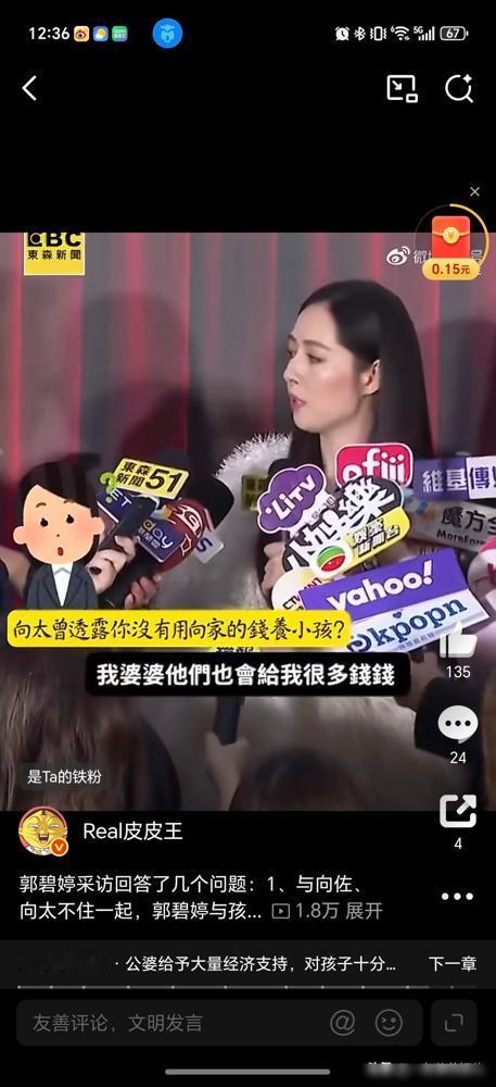 郭碧婷采访回答了几个问题: 1、与向佐、向太不住一起,郭碧婷与孩子常年住娘家台北,以后读书也是,平时打电话给向佐,只关心他是否与孩子联络。 简单捋一下:就是她在一次采访里,回应了婚后生活、和向太的关系、孩子的事,还有外界常讨论的那些点,基本都正面说了。 她提到孩子是自己想生的,不是被催;现在的生活状态是和孩子住在台北娘家,不跟婆家同住,向佐更多是电话联系,重点还是孩子有没有互动。 说个我更在意的点,她并没有把“分开住”包装成什么苦情或牺牲,而是很自然地当成一种选择。这个心态本身就挺松弛的。 还有经济这块,她也说得很直白:向太和向佐经常给孩子很多钱。不是遮遮掩掩那种,这反而让我觉得她很清楚边界在哪。 然后更有意思的是她对外貌的回应。别人可能会避开“越来越像向太”这种话,她却坦然说是越来越富贵的长相,接受度蛮高。 我感觉她现在的幸福感,更多来自掌控感:孩子在身边,生活节奏自己说了算,钱的部分也不用焦虑,人不用天天处理婆媳关系。 当然这不一定适合所有人,但至少说明一种情况——不住一起、不黏在婚姻角色里,也可以过得很稳。 所以突然觉得,她现在这套生活方式,对她本人来说,确实挺舒服的。说不上完美,但很清醒。