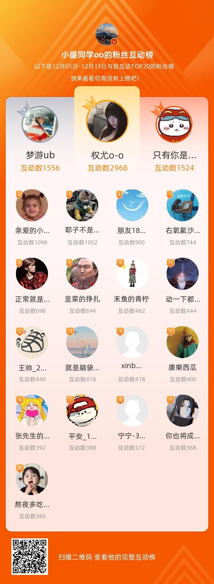 等,你们是我本月排名TOP20的粉丝,感谢你们的陪伴与支持,期望一直都有你们的相伴~ 查看我的