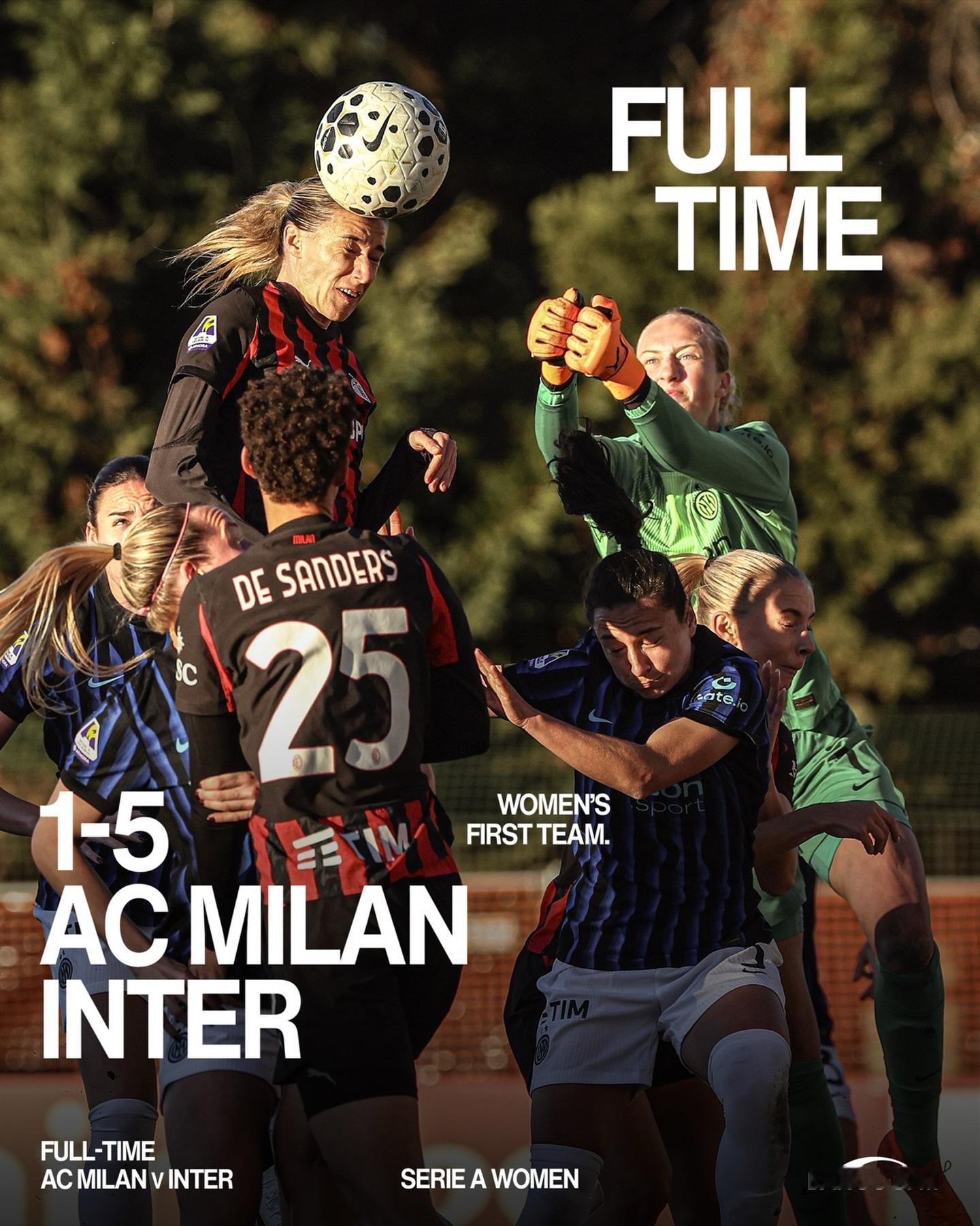 【米兰女足赛果】 2025-26赛季意甲 女足联赛第九轮:🔴⚫️ 米兰女足主场1:5“惨败”国际米兰女足。sempremilan 米兰德比