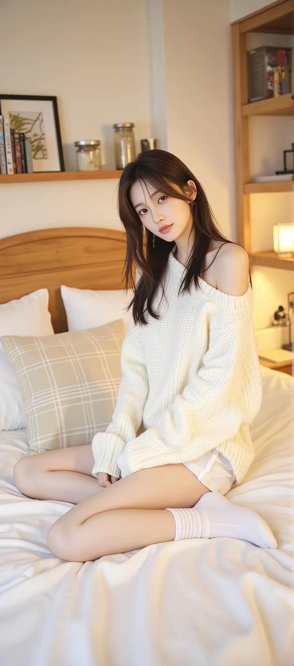 温暖冬日,慵懒午后,白色毛衣与毛绒绒的床,少女心满满!🌟💖网络美少女穿搭分享 职场女性都喜欢什么样的穿搭风格?