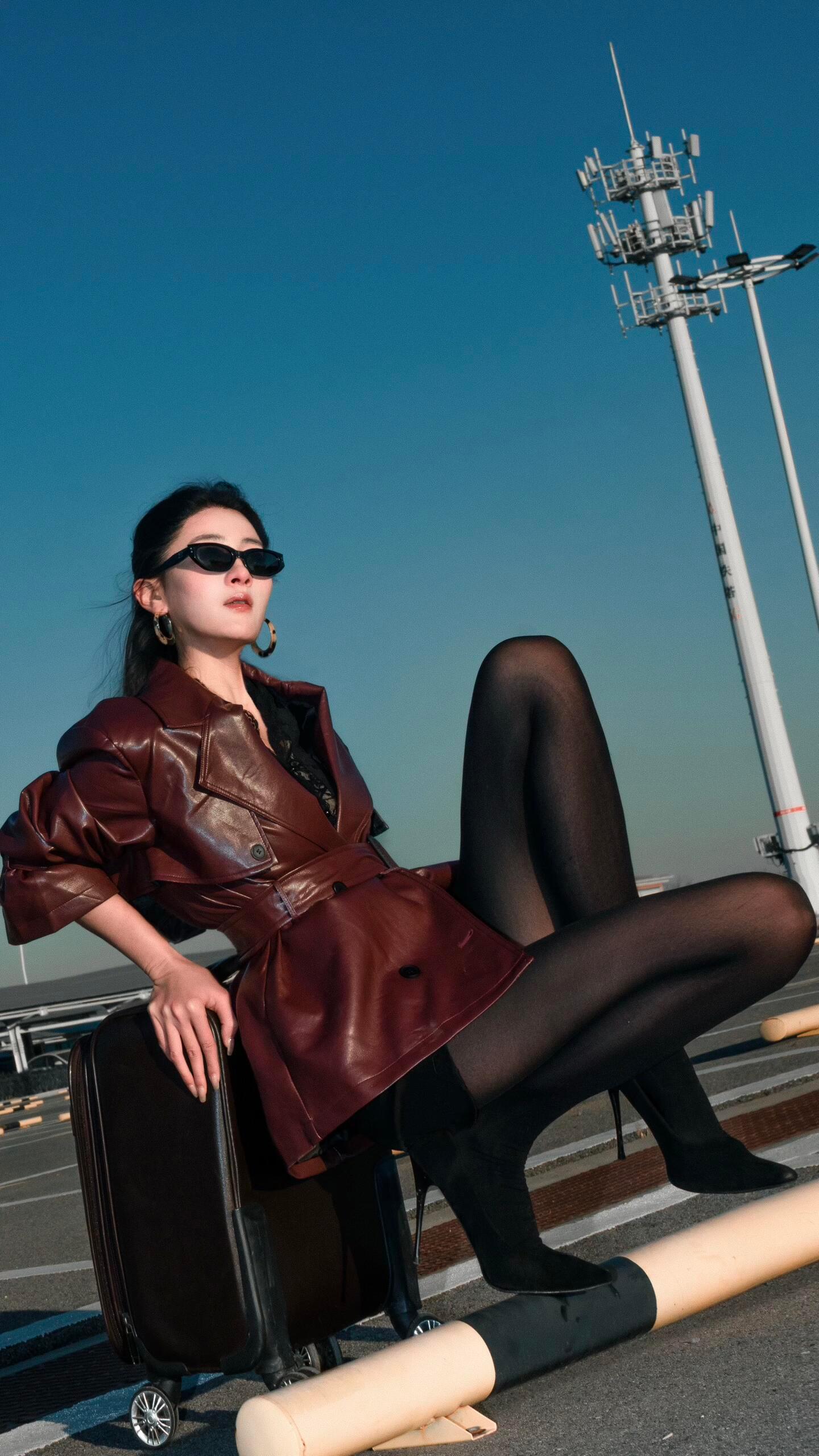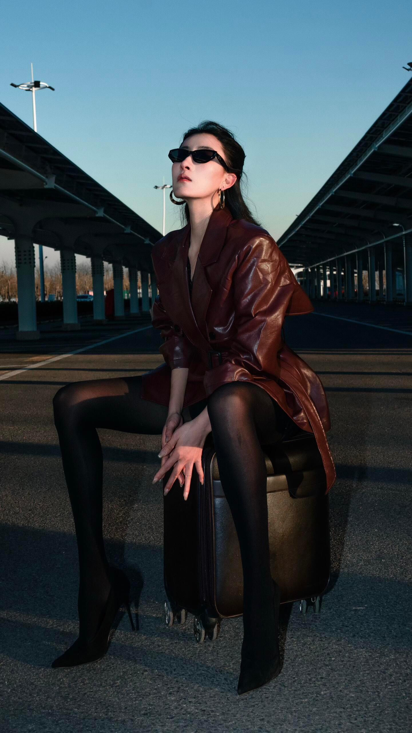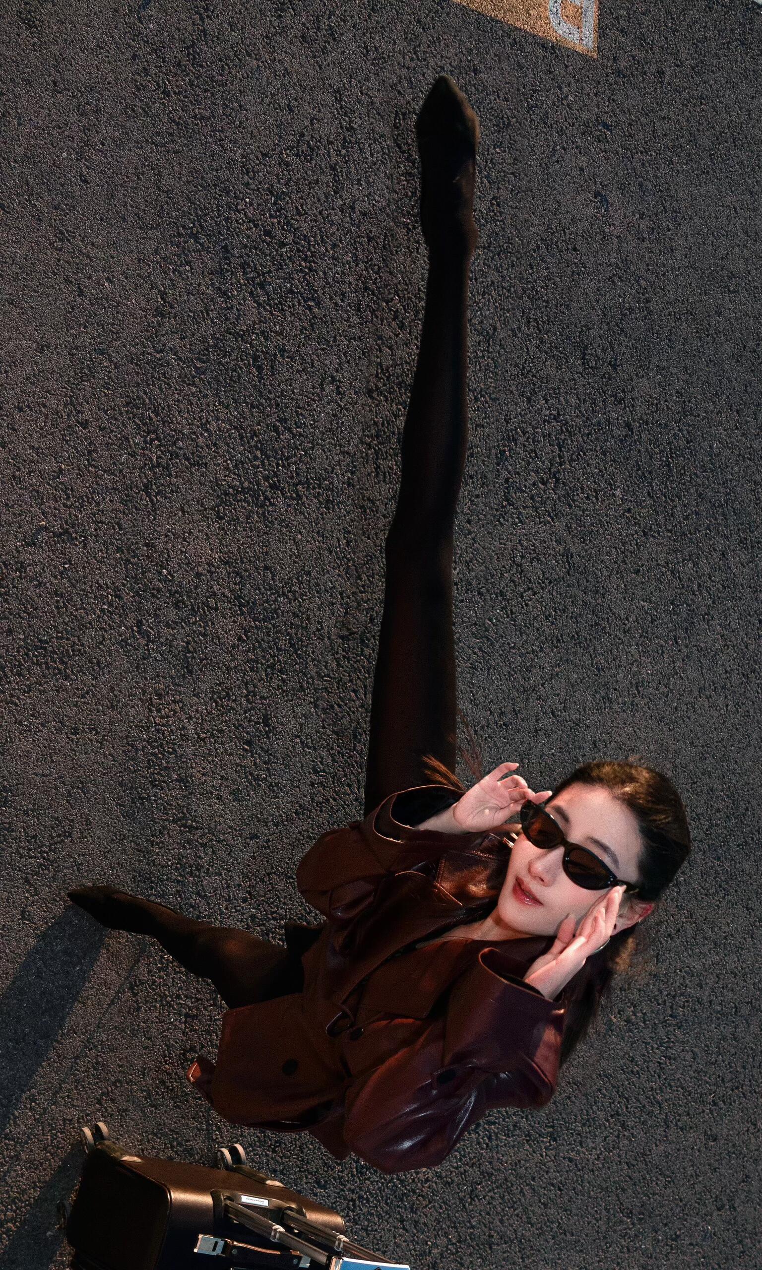 红皮衣当然要配厚黑啦,上松下紧的穿搭总是不会出错,内搭黑色蕾丝打底衫是我的小心机~再搭配一副墨镜气场直接拉满!