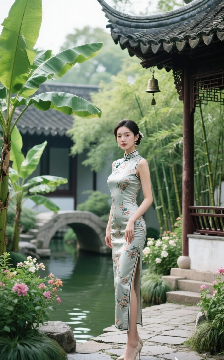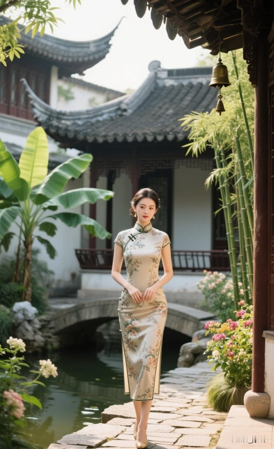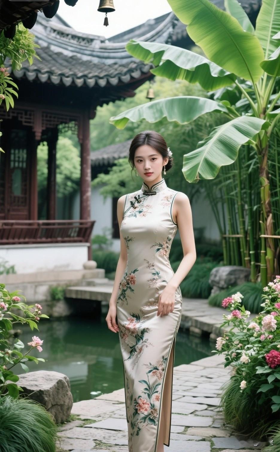旗袍怎么样拍照有韵味真丝绣花旗袍