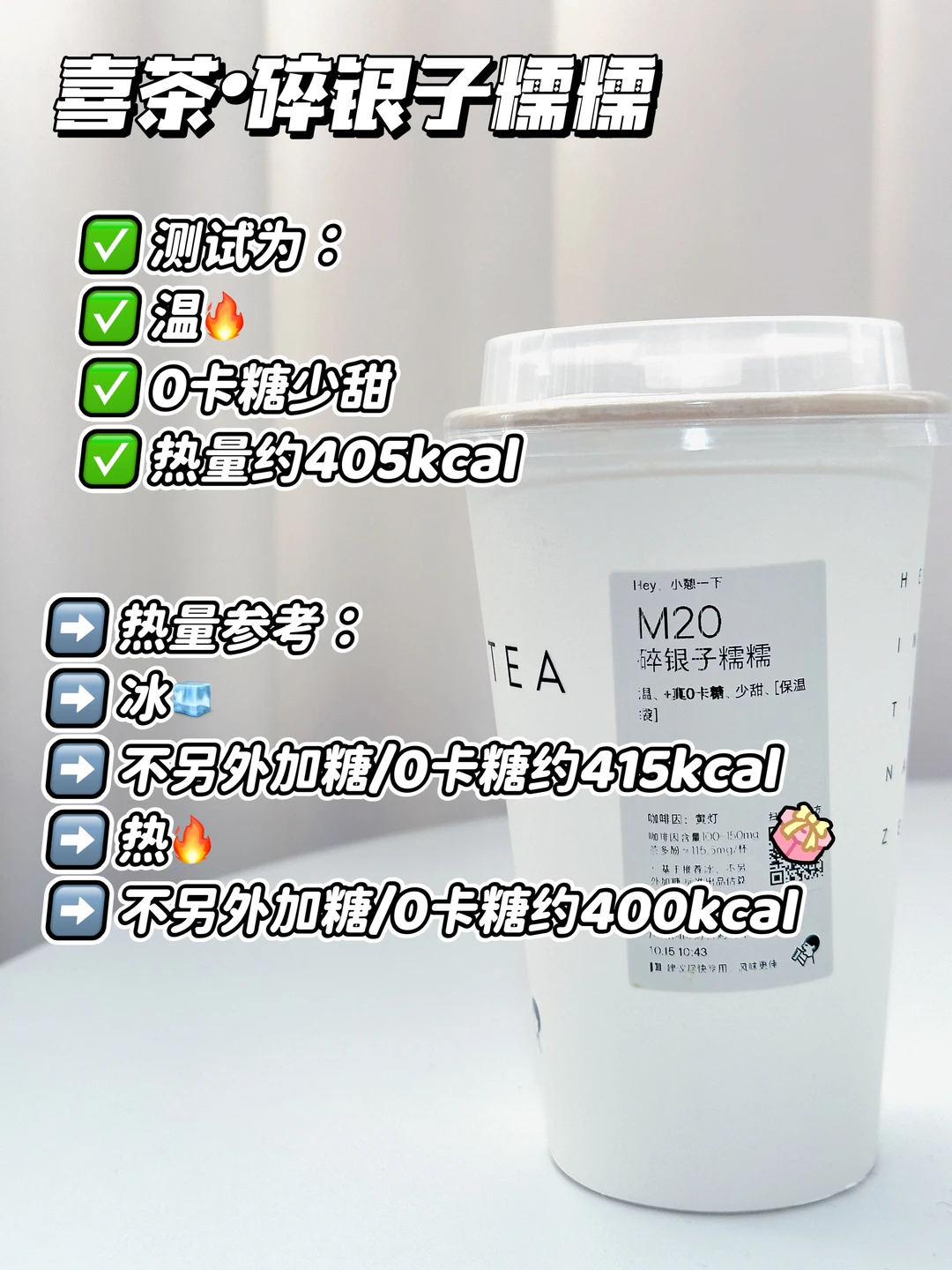测试为:温🔥0卡糖少甜 热量约405kcal