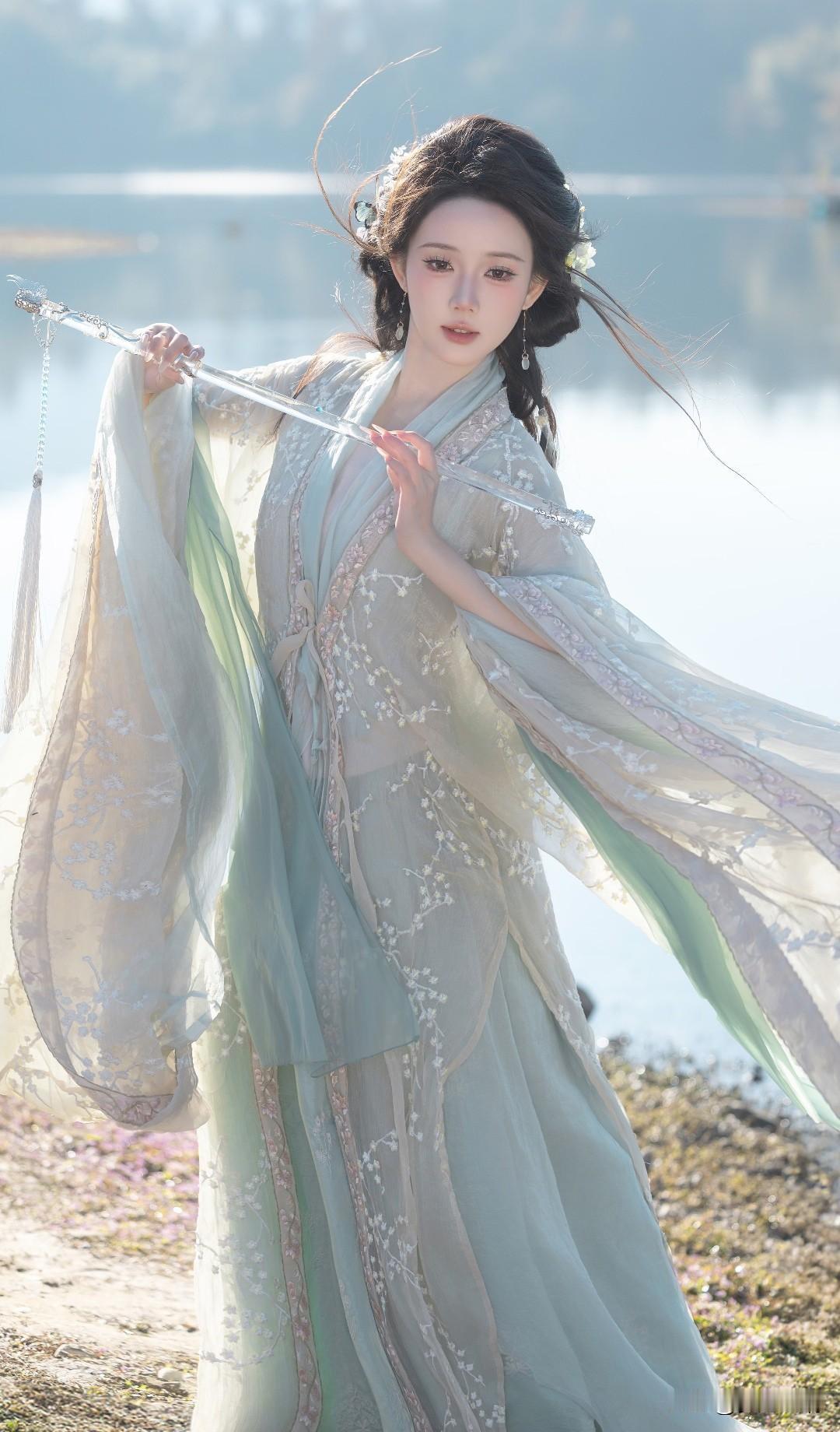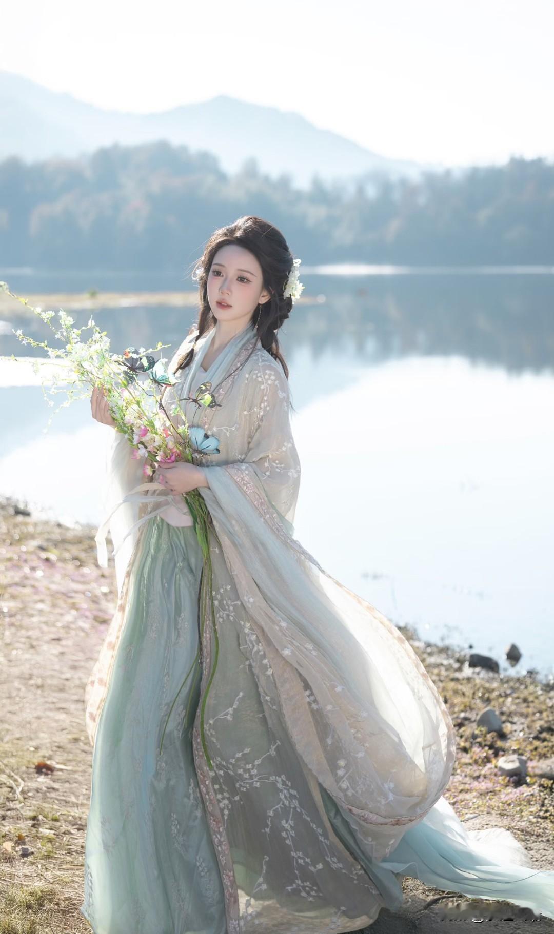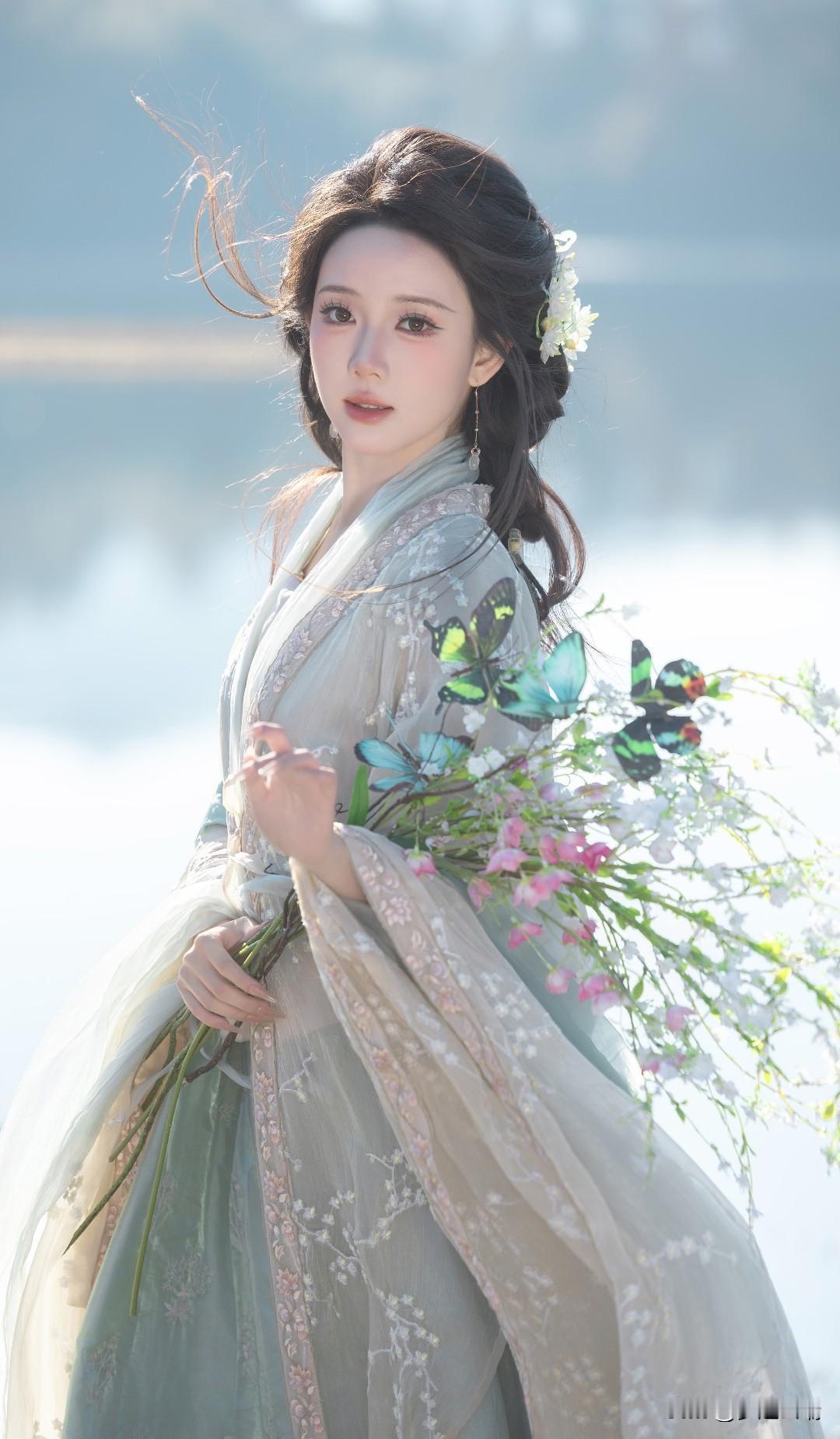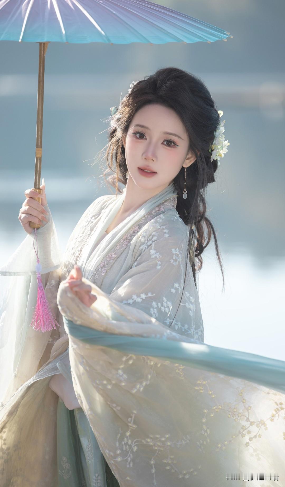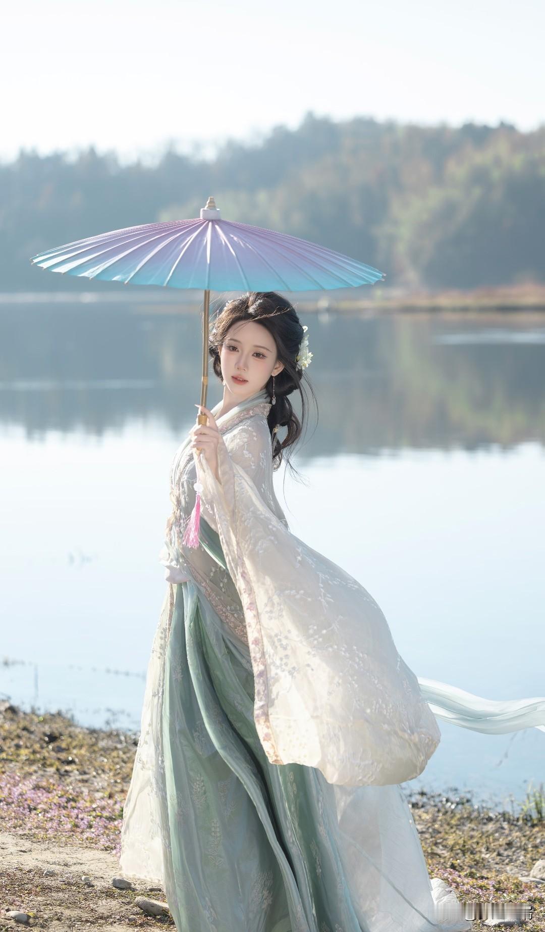 “古风仙子漫步湖畔,撑伞轻舞,如梦如幻”🌸💃🌿