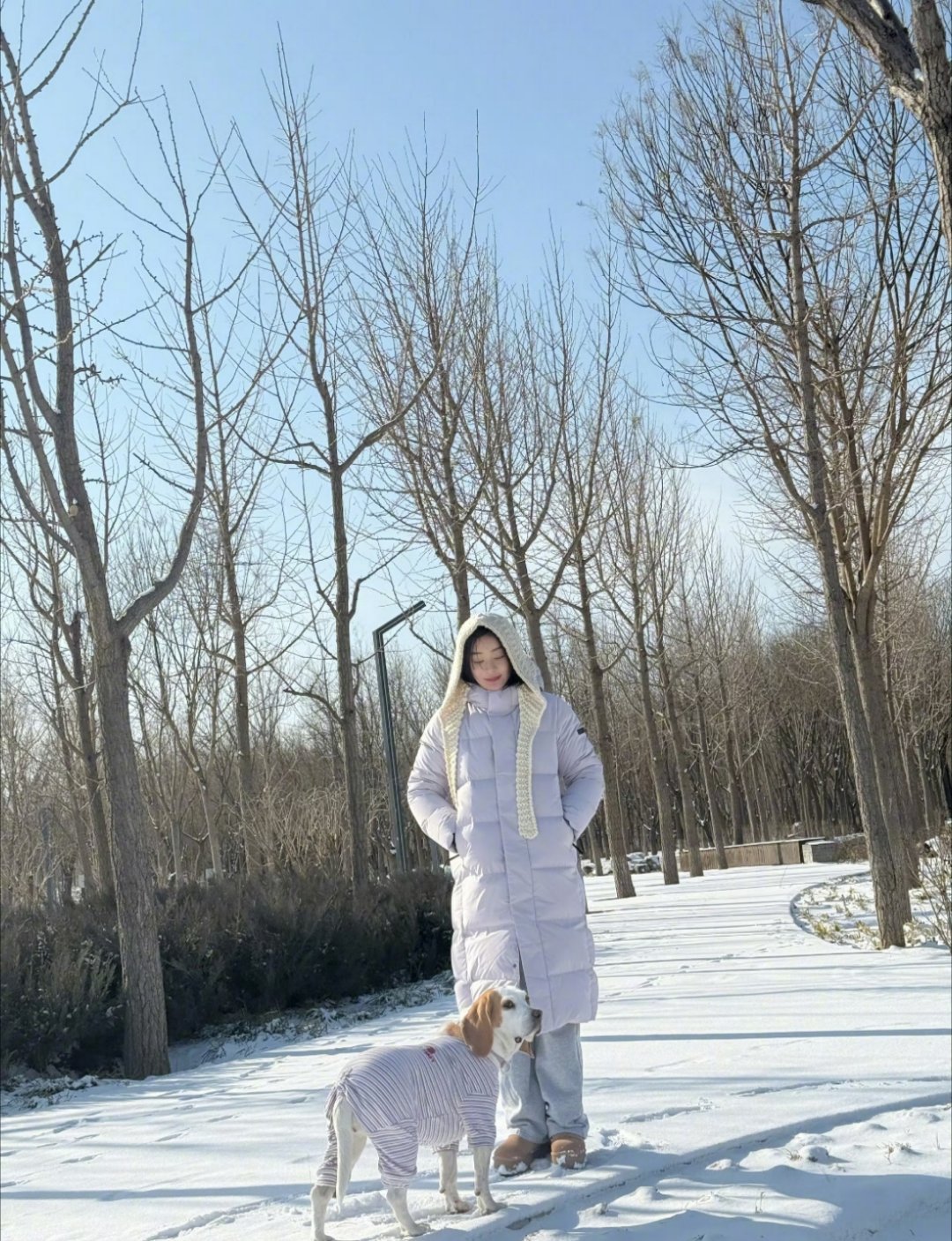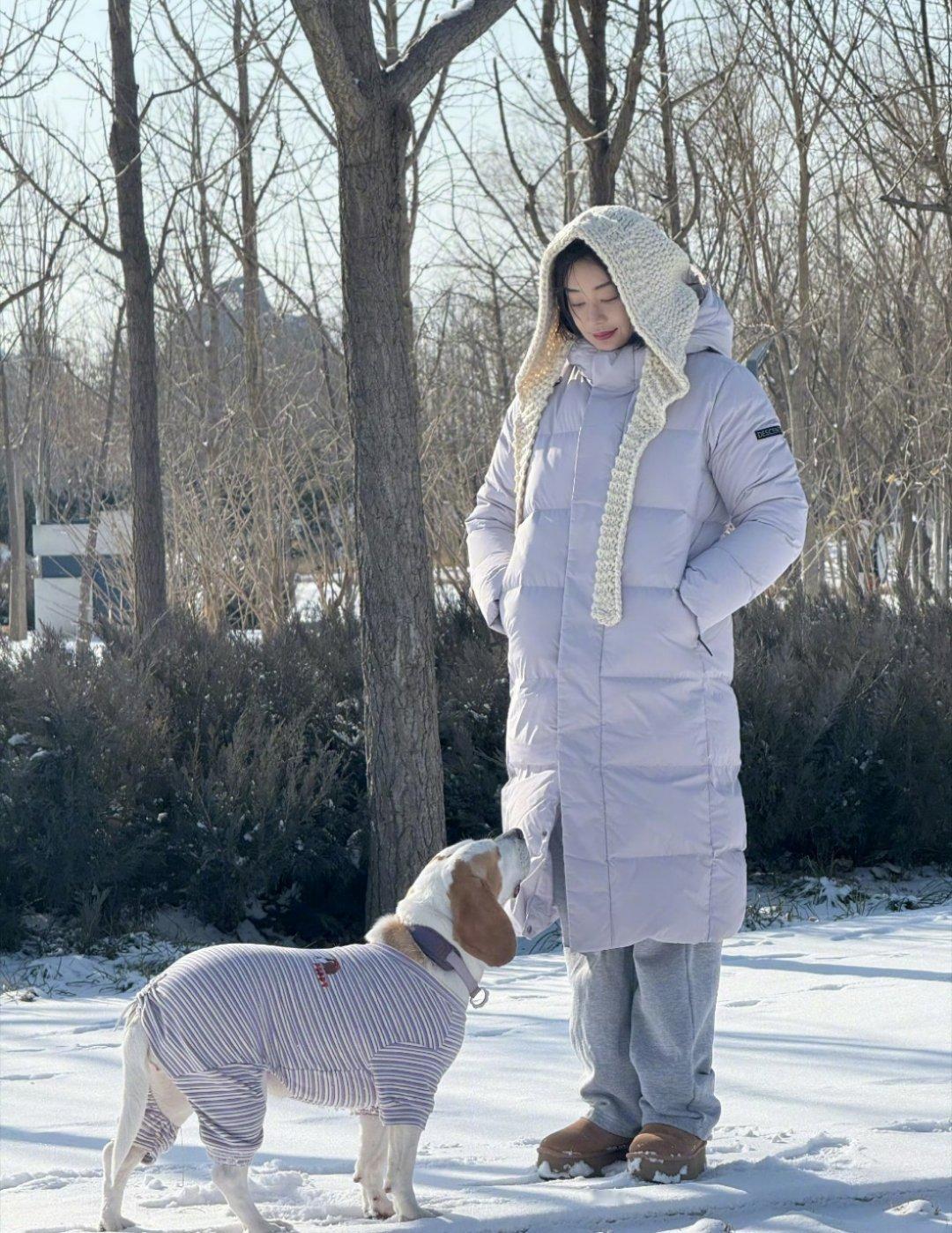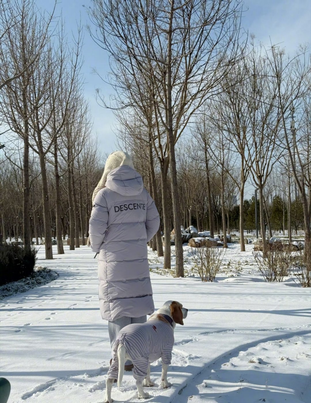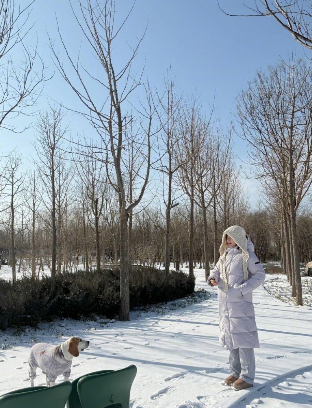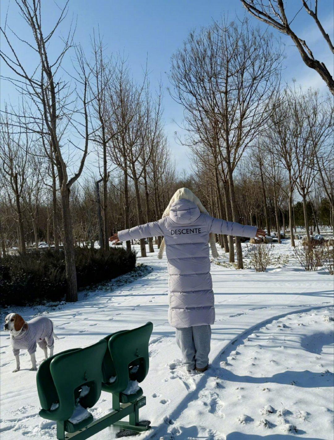 靓靓也是过上好日子了,想跟袁姗姗一起打雪仗