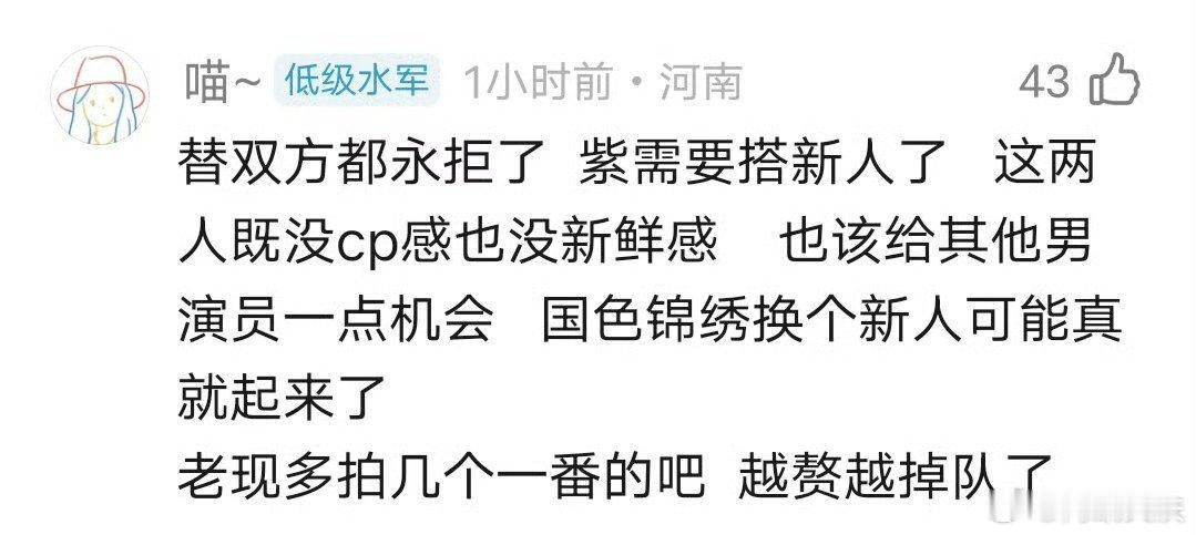 拉着华策那部一起就比较假了.不过现在的现紫确实就像老熟人硬装甜蜜,但人人都知道他们没事儿,没cp感了