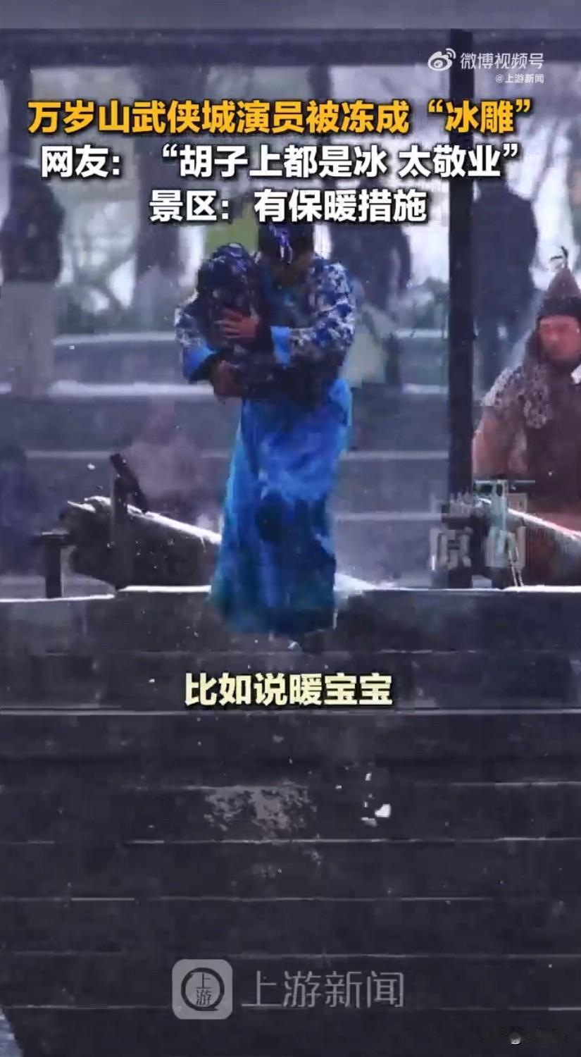 最近河南下了场大雪,开封、洛阳这些地方都被白雪盖了一层,气温也跟着骤降,可当地的景区却没因为天冷就停演,反而因为演员们的敬业演出火出了圈。最让人印象深的就是开封万岁山武侠城的一位NPC演员,他扮演着关羽,身披铠甲、手持青龙偃月刀站在雪地里站岗,远远望去全身都覆着白雪,眉毛和胡子上还结了一层晶莹的冰凌,乍一看真像一座栩栩如生的“冰雕”。有游客特意走近想看个究竟,才发现这居然是活生生的演员,看着他在寒风中一动不动保持着角色姿态,游客忍不住感叹“这也太敬业了”,随手拍的视频发到网上后,很快就引发了大家的热议。 网友们看了视频,一边为演员的专业精神点赞,一边也心疼地说“看着都觉得冷,太辛苦了”。针对大家的担心,景区客服也很快回应,说雪天里景区的演出都会正常进行,但绝对不会让演员硬扛严寒。演员们都是轮班上岗,不会长时间待在户外,而且景区早就准备好了暖宝宝、热水,厚衣服也会随时给大家更换,全力做好保暖保障。不少去现场的游客也说,下雪天看《雪夜山神庙》这类演出特别有感觉,雪花飘着的时候,仿佛真的穿越到了武侠故事里,演员们在雪地里耍刀、翻跟头,动作一点不含糊,就算穿着单薄的戏服,也没看出半点敷衍。 其实这已经不是河南景区演员第一次因为严寒中坚持表演引发关注了,开封清明上河园的演员之前也有过类似的敬业表现。在一场“大宋东京保卫战”的实景演出中,剧情推进到关键处,一位身穿宋代平民服饰的演员抱着婴儿道具,喊出“我大宋百姓宁死不屈”的台词后,毫不犹豫就纵身跃入了冰冷的湖水中。当时天空正飘着鹅毛大雪,岸边的游客都冻得手脚发麻,看到这一幕纷纷鼓掌叫好,既敬佩又心疼。景区也表示,演员跳水是为了真实还原历史场景,而且早就配备了防水保暖内衣、即时取暖设备等专门的保暖措施,还会根据天气和水温灵活调整剧情,如果天太冷水面结冰,就会直接取消这个环节,绝对保障演员的安全。 河南省文旅厅也提到,最近大雪天气里,不管是开封的清明上河园、万岁山武侠城,还是洛阳的洛邑古城,景区的演出都没停过。演员们全情投入,就是想让每一位远道而来的游客都能不虚此行。网友们纷纷留言说,河南景区的诚意真的拉满了,天气虽然冷,但演员的敬业和景区的用心却让人心里暖暖的,这样的沉浸式体验,比任何特效都更打动人。河南5天下雪 来源:上游新闻