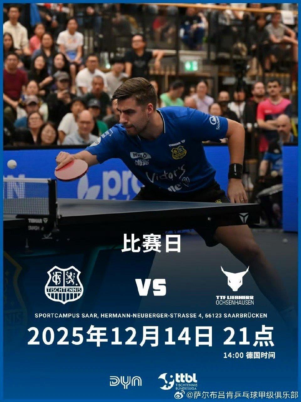 今晚又能看樊振东比赛了萨尔官微发文:今天又是主场比赛日 🏓📍 比赛将在 赫尔曼·纽伯格体育学校 举行👉 由于 约阿希姆-德卡姆体育馆 目前被占用,本场比赛临时更换场地。✨ 特别看点:时隔数月,樊振东 将再次代表我们出战!💪🔥